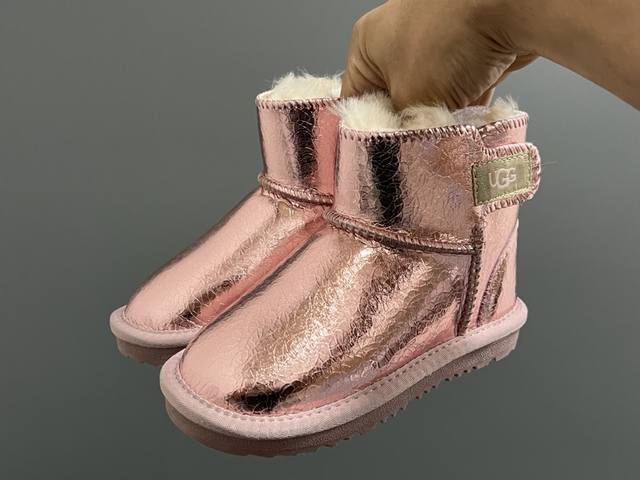 / Ugg皮毛一体侧贴魔术贴儿童雪地靴 Size:25-35码 经典Ugg雪地靴 优质皮料拼接,质感满满 魔术贴设计,穿脱方便 橡胶耐磨防滑大底,脚感超赞