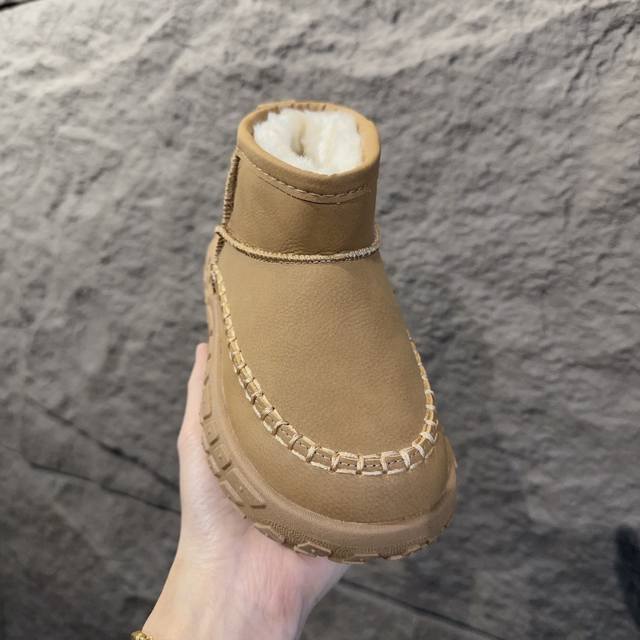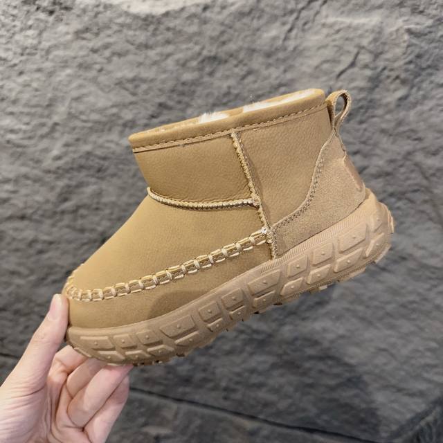 Ugg轮胎底雪地靴 Ugg加绒保暖登山防滑户外雪地靴童鞋 真皮软底保暖防冻网红爆款棉鞋 26-37