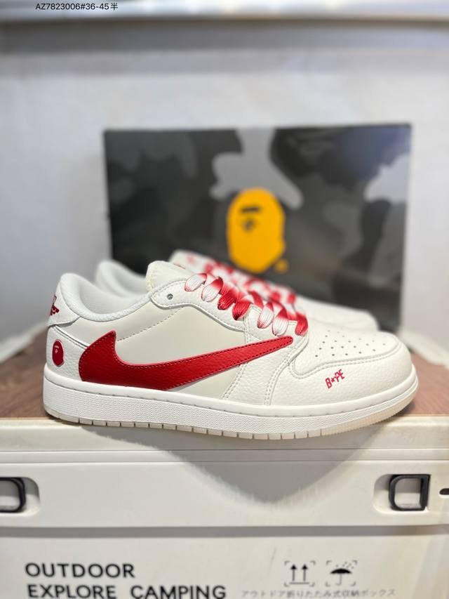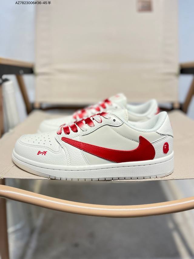 360 Fragment X Travis Scott X 猿人头 Air Jordan 1 Low 三方联名倒钩 性价比原盒出货 全新的三方联名低帮倒钩鞋面