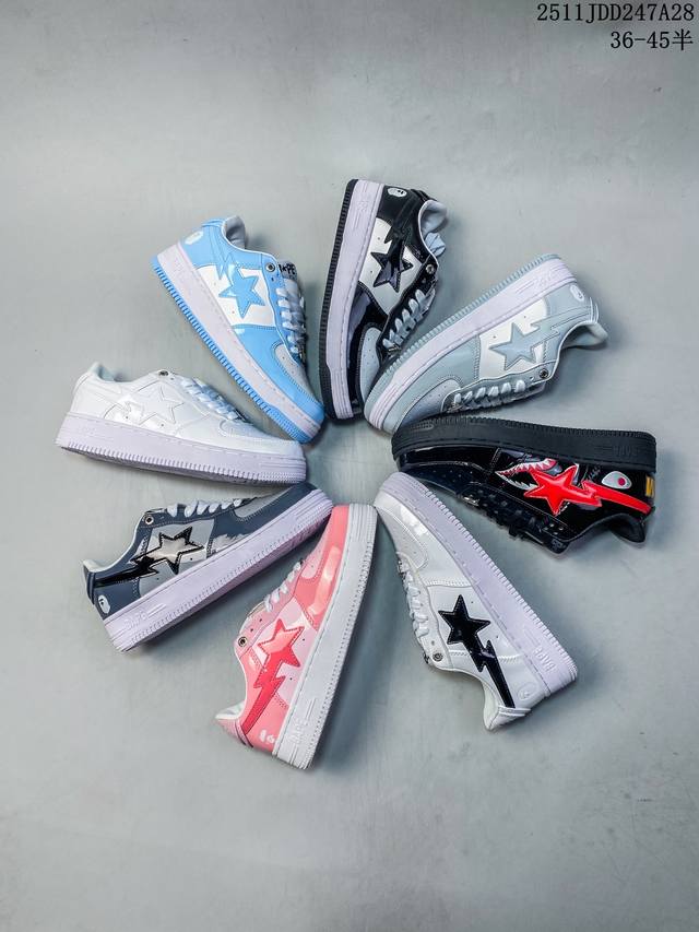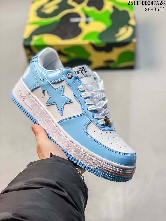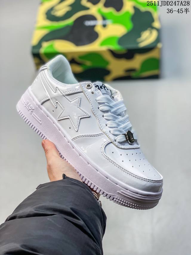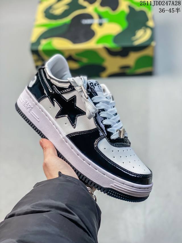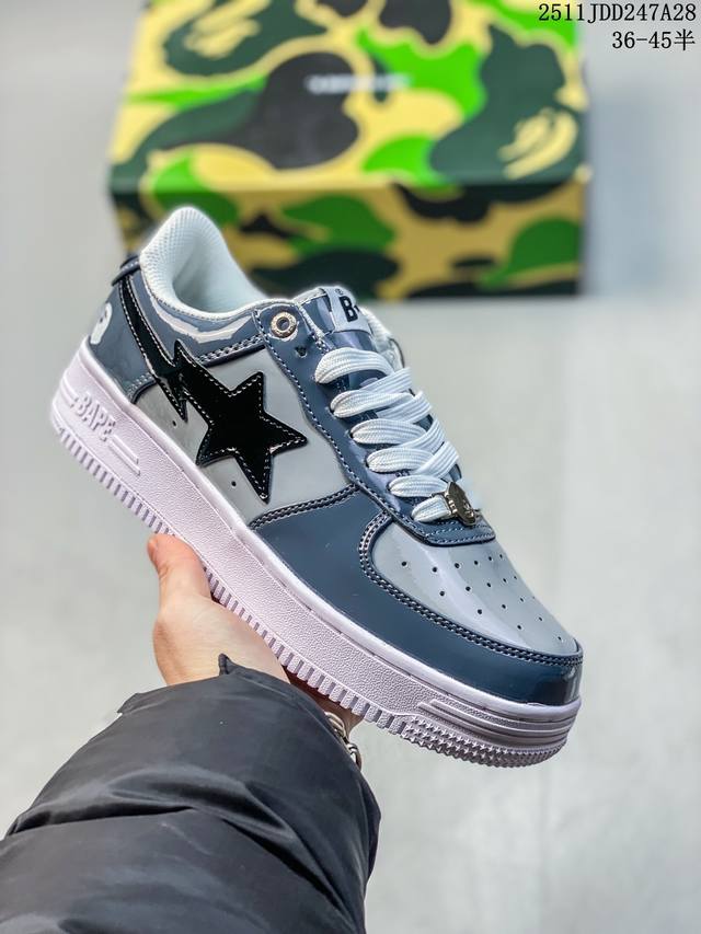Bape Sta To Low 猿人头经典漆皮低帮运动休闲板鞋 全套原纸板楦头开发 确保原汁原味 市场最完美低趴版型 鞋头弧度高度鞋身弧度 外贸平台指定订单 独家私模磨具冲刀加持 原厂特供皮料光泽色卡零偏差 内里均采用市场最好的超软原厂填充棉 原数据进口机台高频印压Logo 最高Qc检验标准 控制溢胶瑕疵 深浅定位均保持Zp一致 中底嵌入Ortholite缓震材质 全套原包装 包含猿人Logo DDD 11Jdd247A28 DDD