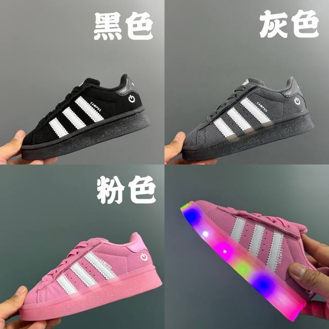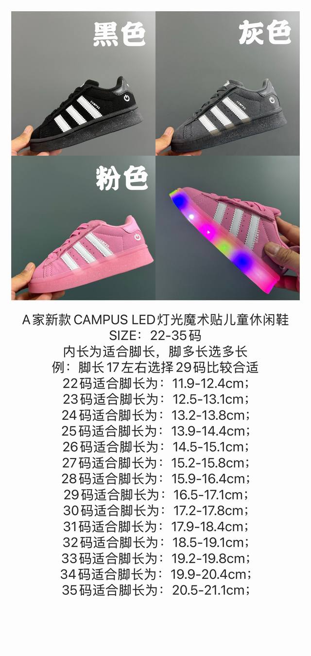 FFF A家新款Campus Led灯光魔术贴儿童休闲鞋 DDD Size:22-35码 DDD 经典Campus款式 DDD Led灯光设计,满满童趣 DDD 魔术贴设计,穿脱方便 DDD 耐磨防滑大底,脚感超赞 DDD
