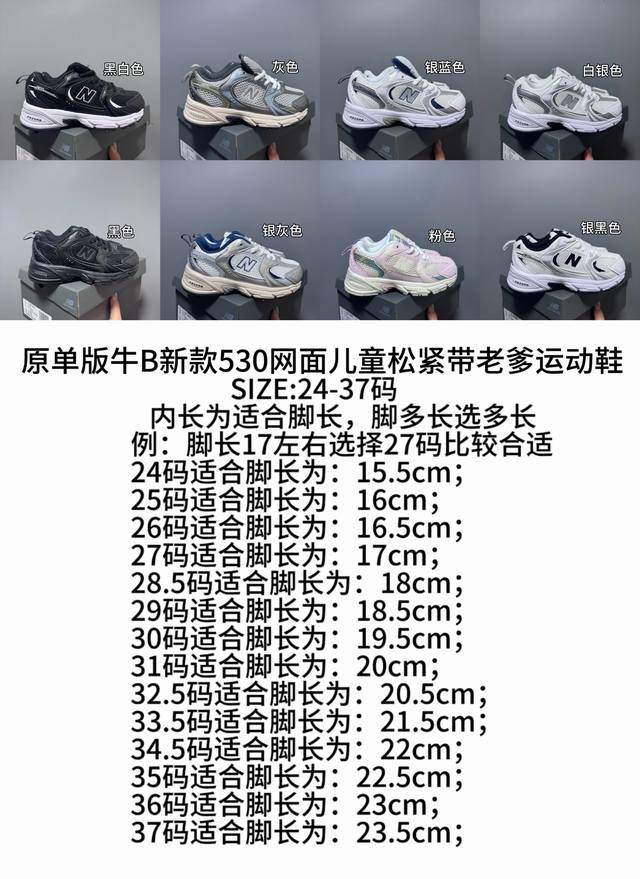 FFF DDD 原单版Nb新款530网面儿童鞋带款配一副松紧带运动鞋 DDD Size:24-37 DDD 新工厂P新工艺 DDD 经典Nb530老爹款 DDD 松紧带设计钱,穿脱超方便 DDD 老爹款百搭又时髦. DDD