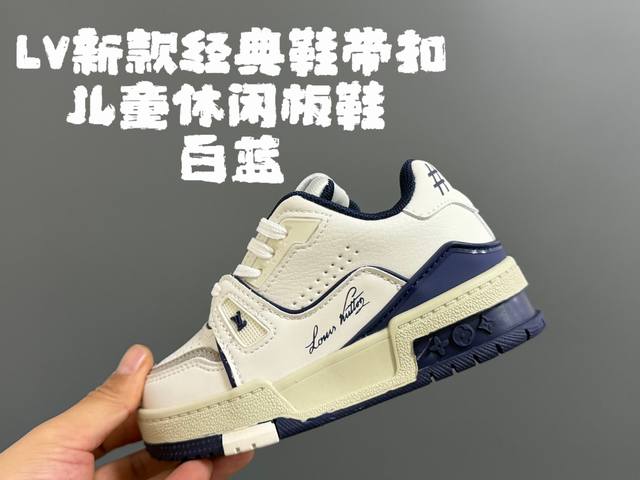/ L家新款经典鞋带扣儿童休闲板鞋 DDD Size:24-35码 DDD 经典Lv款式 DDD 优质皮料拼接,印花质感满满 DDD 附赠一对鞋带扣设计,穿脱超方便
