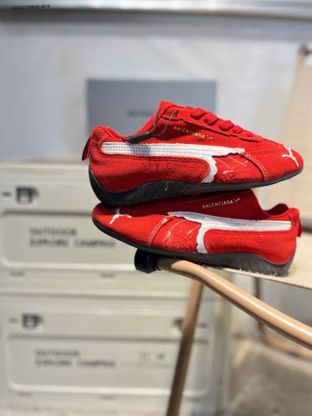FFF Puma 彪马 X Balenciaga巴黎世家 Speedcat 系列 薄底鞋 牛皮绒面革 圆头做旧磨损 低帮 生活休闲鞋 DDD 极速赛车系列 复古运动休闲跑鞋 充正版本 DDD 鞋面设计轻量透气 提供了舒适性和穿着感受 DDD 柔软内里材质 穿着更加舒适 DDD 橡胶鞋底提供持久的牵引力847146 C7022729#36-45半 DDD