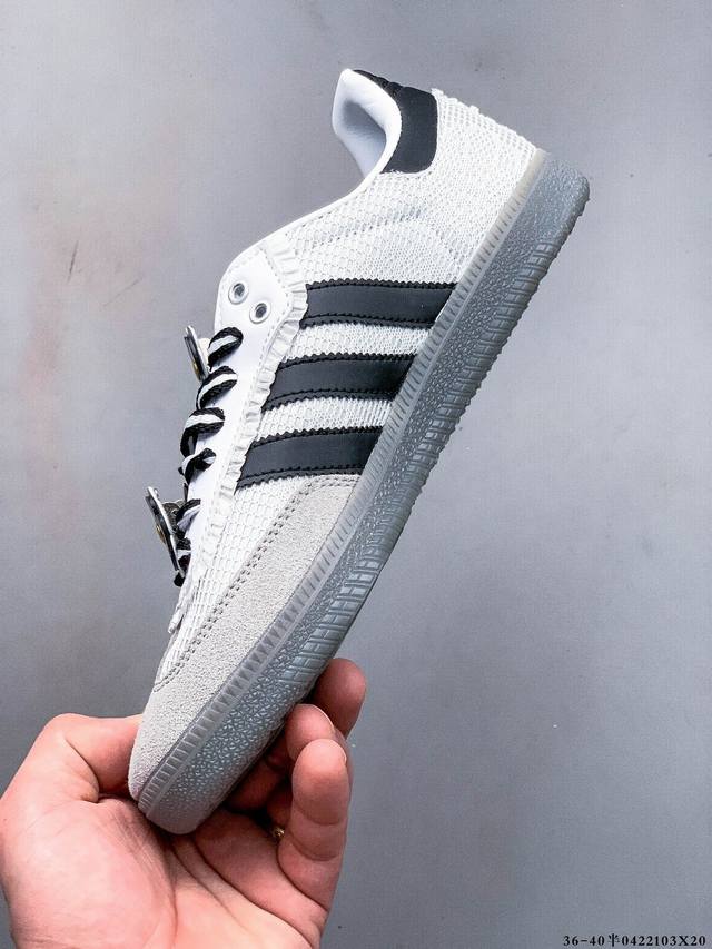 Adidas 近70年的经典Samba Og 修长的鞋楦,略微尖尖的鞋头,翻毛皮的鞋头拼接,这些我们都看得到的元素正是Samba的设计灵魂