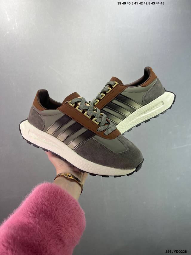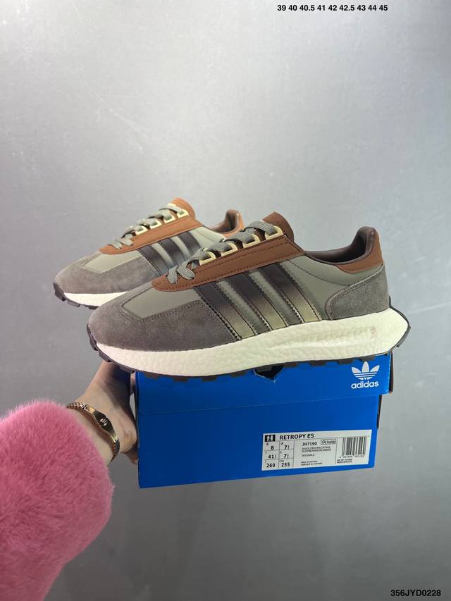 公司级阿迪达斯 新款 三叶草 厚底 Retropy E5 白深蓝 新款低帮经典运动鞋以70年代经典跑步鞋为灵感,新鲜演绎复古造型。搭载Adidas Boost科技,打造现代感。旨在带来舒适脚感,同时展现复古风格。