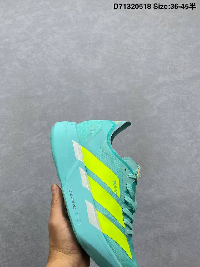 公司级 阿迪达斯 Adidas Adizero Adios pro 4 舒适防滑耐磨 低帮 休闲跑步鞋 男女同款厚度增高老爹鞋 金属银 2025年 Adidas推出了Adidas Adispr4跑鞋 该鞋具有软弹的中底和外底 提供稳定的跑动体验 鞋面采用轻盈的材料 具有良好的透气性 同时具有优秀的抓地力和耐磨性 鞋底的软弹性使得蹬击感更加强 而中底的弹性使得跑步更加舒适 整双鞋的稳定性较高 适合各种跑步风格 然而 由于鞋底的软弹性 对于步幅较大的跑者来说 可能会感到不稳定 总体而言 Adidas pr4是