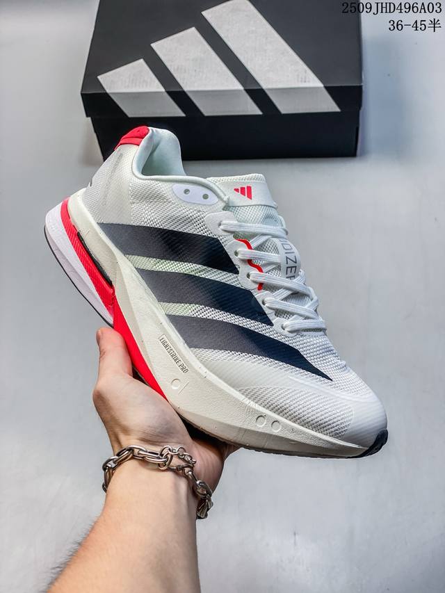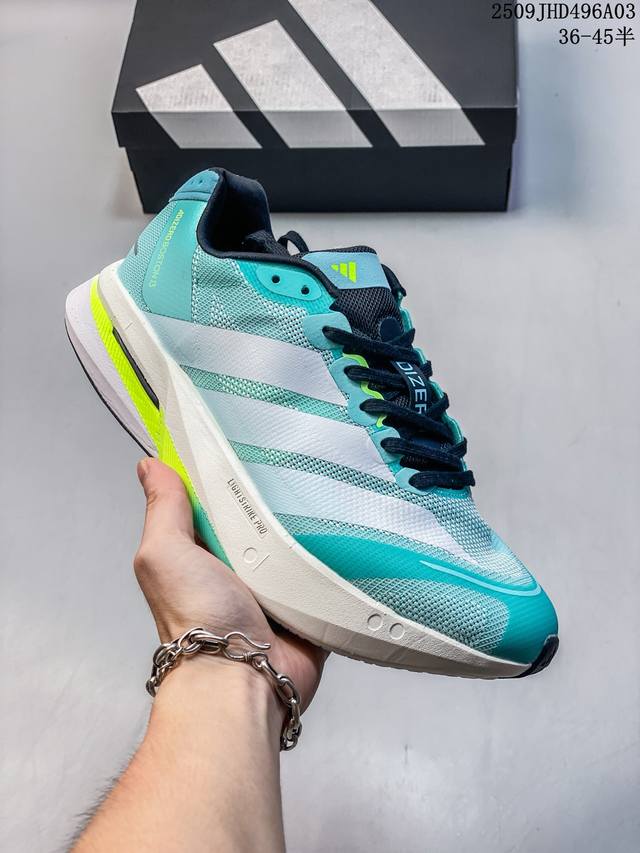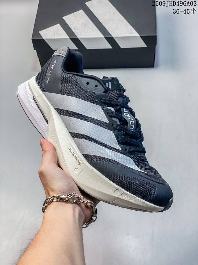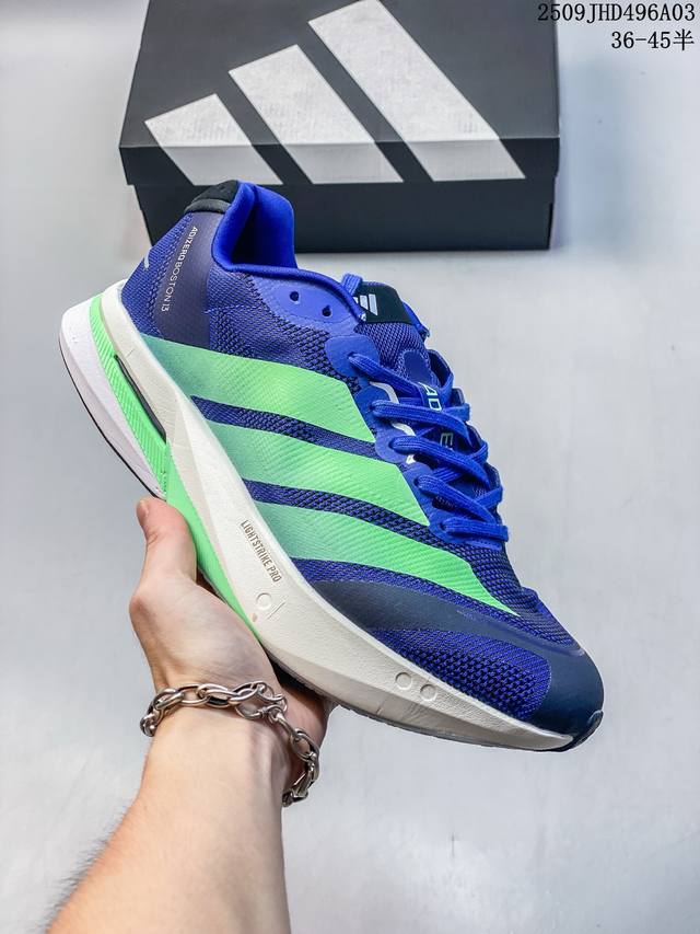公司级 Adidas阿迪达斯Adidas Adizero Adios pro 3 加碳板 耐磨减震专业跑步鞋 加碳板 男女士运动鞋 北京马拉松40周年限定。冲向目标,一路向前,不断挑战和突破自我。无论是平时训练还是马拉松,让这款Adidas跑步鞋伴你畅快开跑。兼具舒适性和结构感,搭载Lightstrike科技,为步伐注入活力。