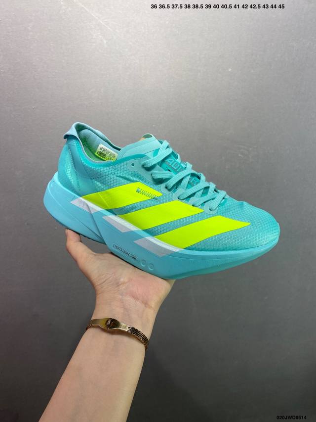 整体外观造型与Adizero Adios Pro Evo 1非常相似 中底配置方面搭载全掌Lightstrike Pro