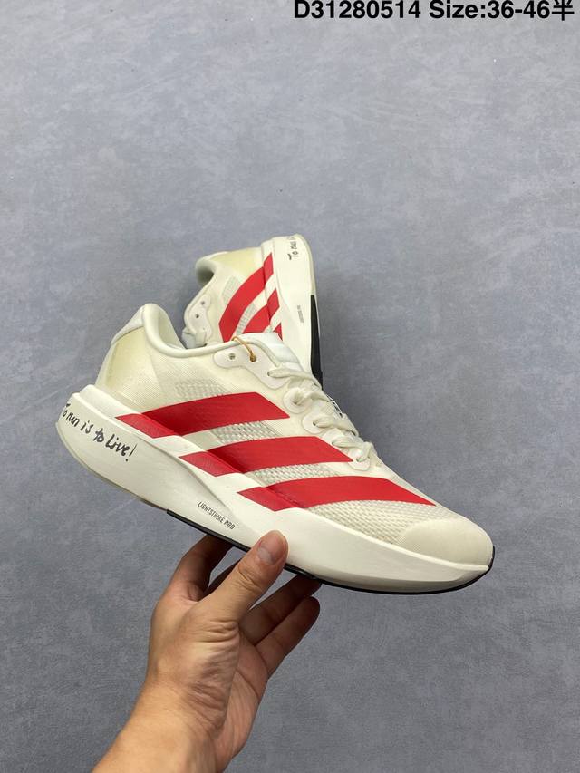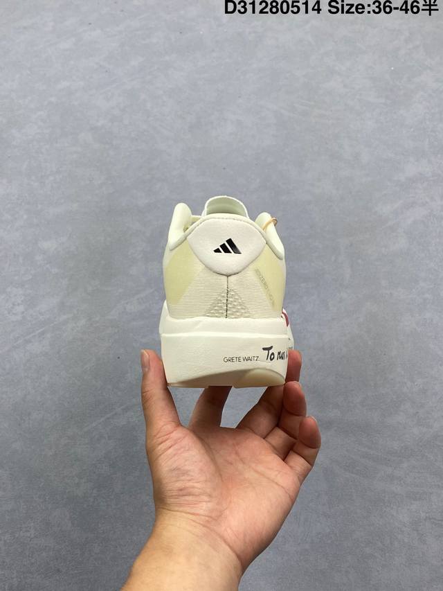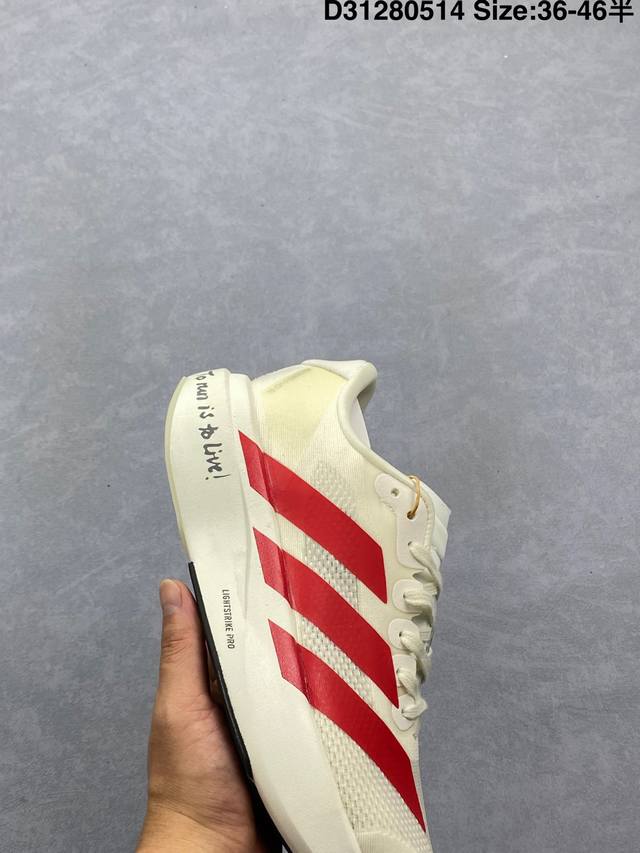 整体外观造型与Adizero Adios Pro Evo 1非常相似 中底配置方面搭载全掌Lightstrike Pro