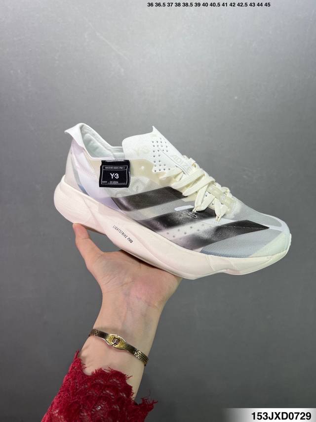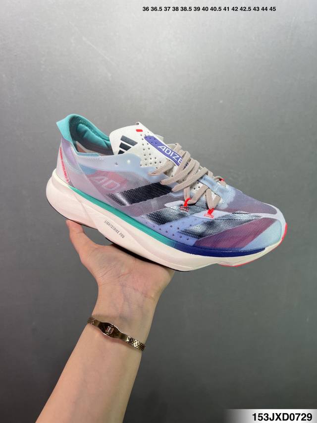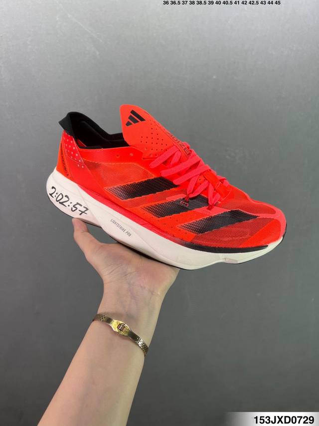 FFF 公司级Adidas Adizero Adios Pro 3马拉松飞线贾卡轻质透气休闲运动跑步鞋 DDD 采用双层透气网纱 Flywire动态飞线绑缚鞋面材质 内置Zoom小气垫装置 DDD 货号:Gx6251 DDD 尺码:36 36.5 37 38 38.5 39 40 40.5 41 42 42.5 43 44 45 DDD Id:153Jxd0729 DDD