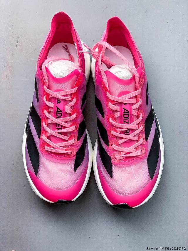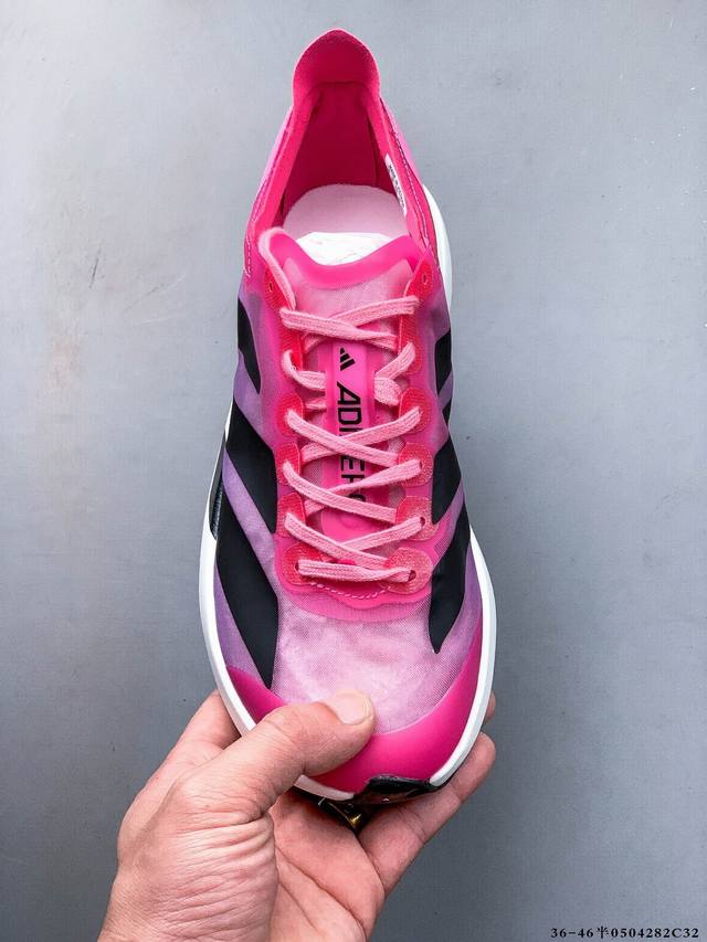 公司级!Adidas Adizero Adios Pro 4马拉松飞线贾卡轻质透气休闲运动跑步鞋 采用双层透气网纱 Flywire动态飞线绑缚鞋面材质 内置Zo