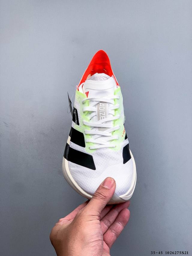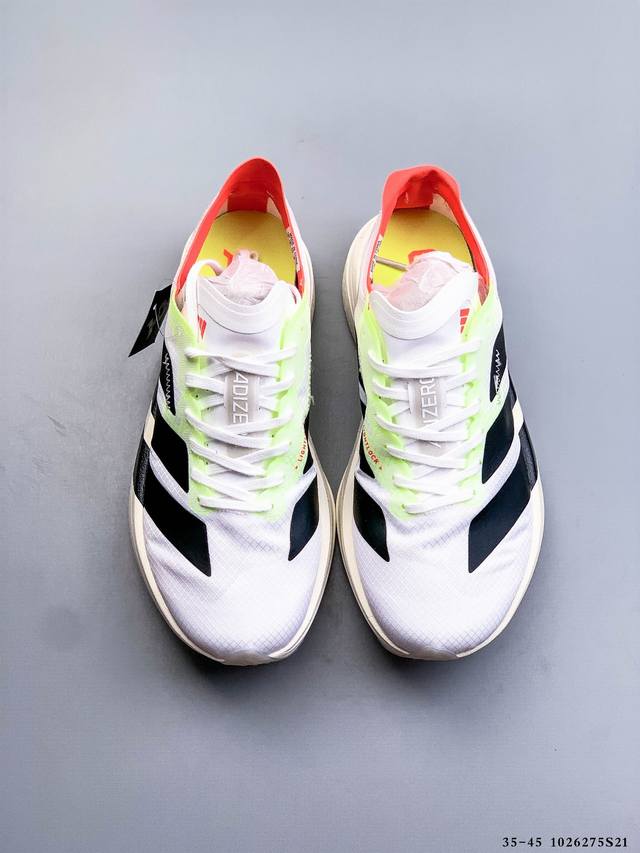 公司级!Adidas Adizero Adios Pro 4马拉松飞线贾卡轻质透气休闲运动跑步鞋 采用双层透气网纱 Flywire动态飞线绑缚鞋面材质 内置Zoom小气垫装置 1026275D21