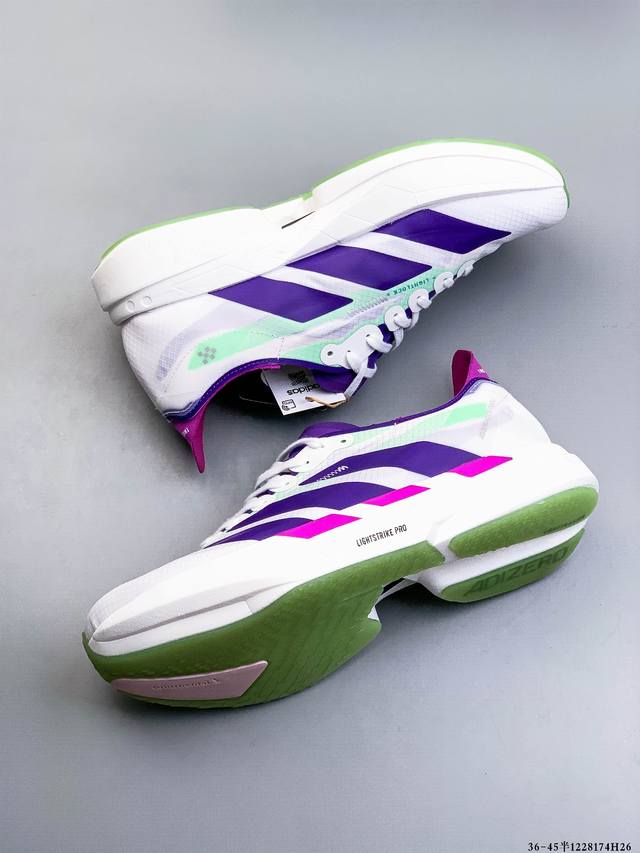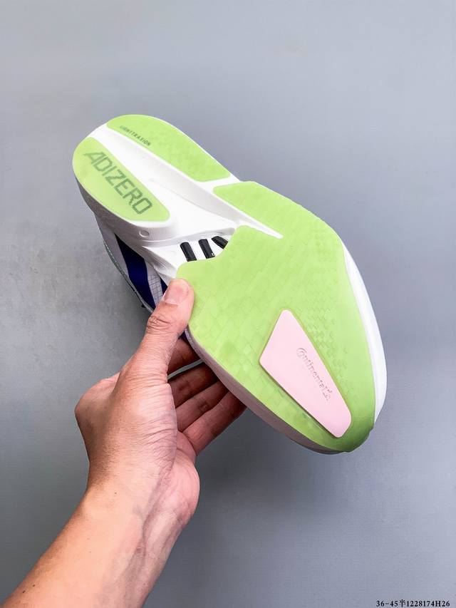 公司级!Adidas Adizero Adios pro 4马拉松飞线贾卡轻质透气休闲运动跑步鞋 Ddd 采用双层透气网纱 Flywire动态飞线绑缚鞋面材质 内置Zoom小气垫装置 Ddd 1228174H26 DDD