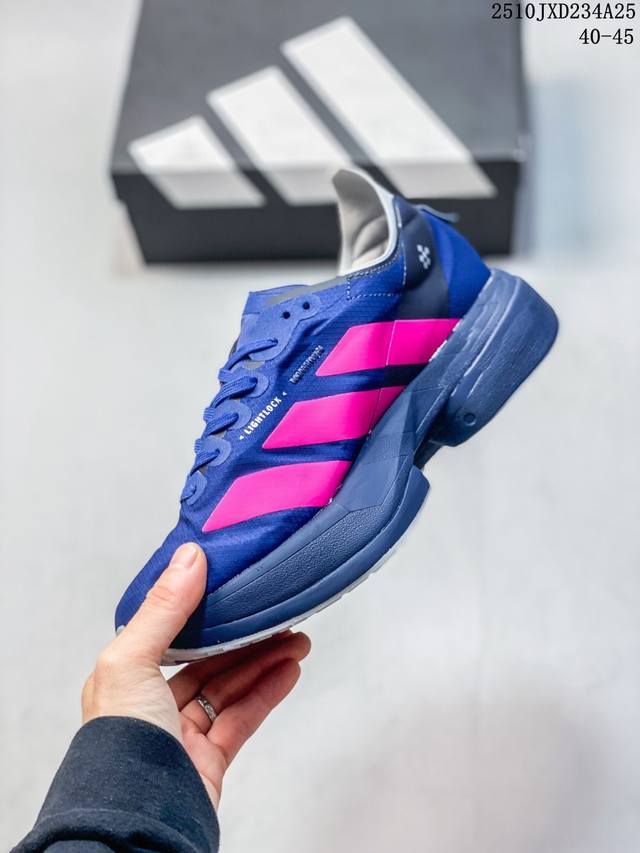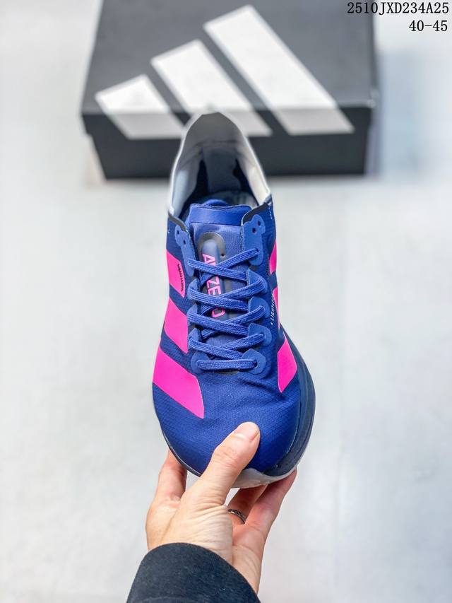 公司级Adidas Adizero Adios Pro 4马拉松飞线贾卡轻质透气休闲运动跑步鞋 采用双层透气网纱 Flywire动态飞线绑缚鞋面材质 内置Zoo