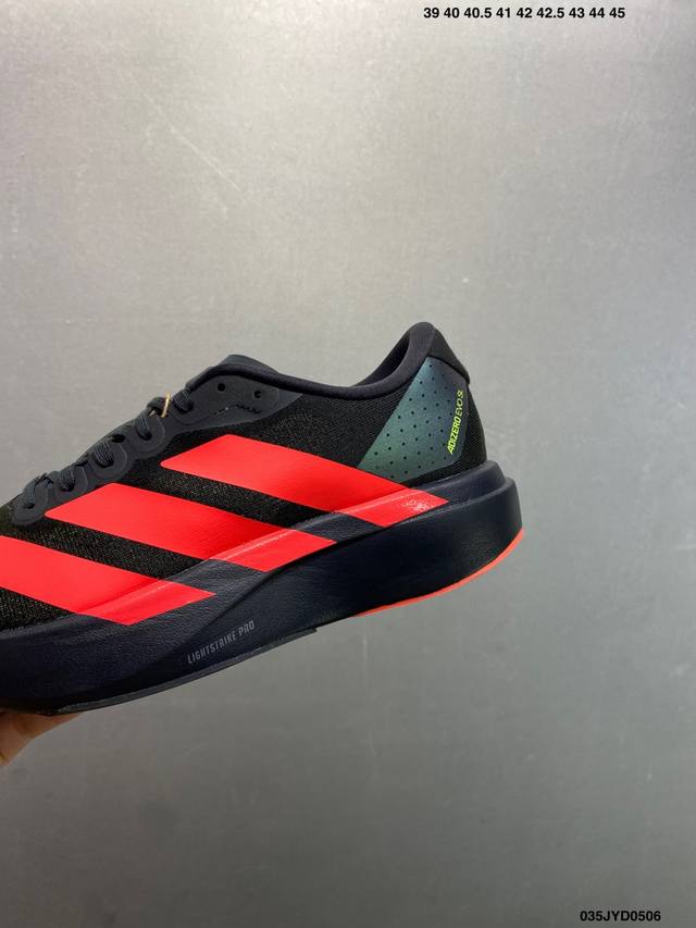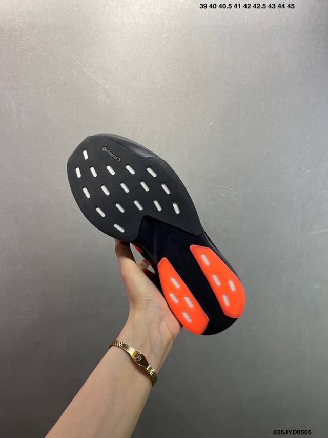 公司级Adidas Adizero Adios 4 M 阿迪超轻透气缓震跑鞋 整体外观造型与Adizero Adios pro Evo 1非常相似 中底配置方面