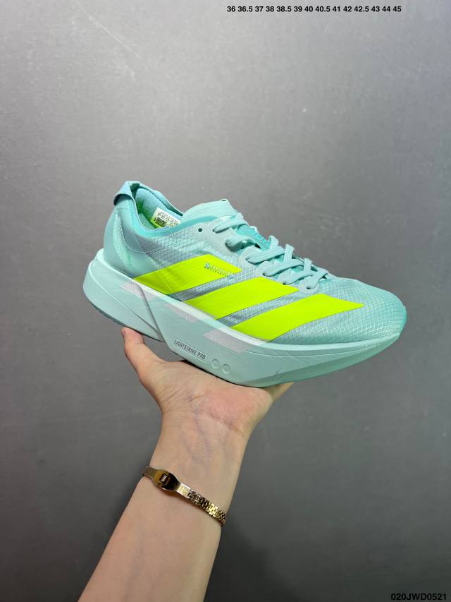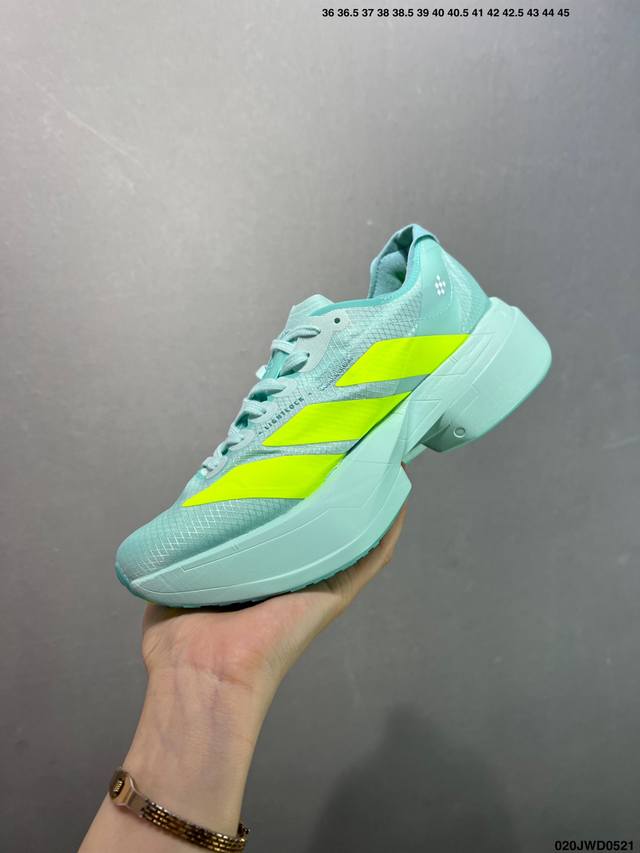 整体外观造型与Adizero Adios pro Evo 1非常相似 中底配置方面搭载全掌Lightstrike pro