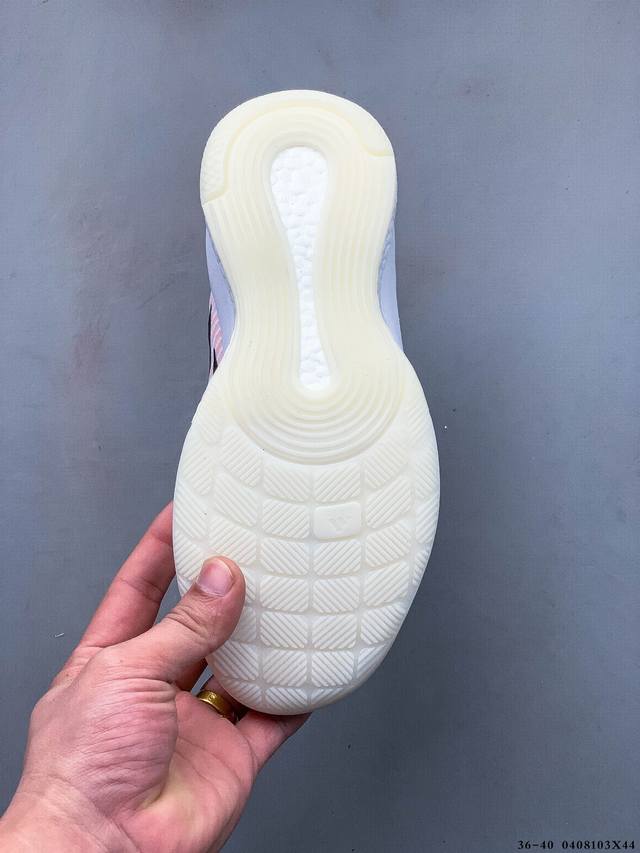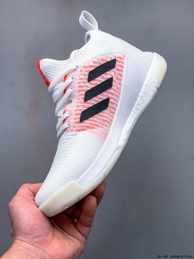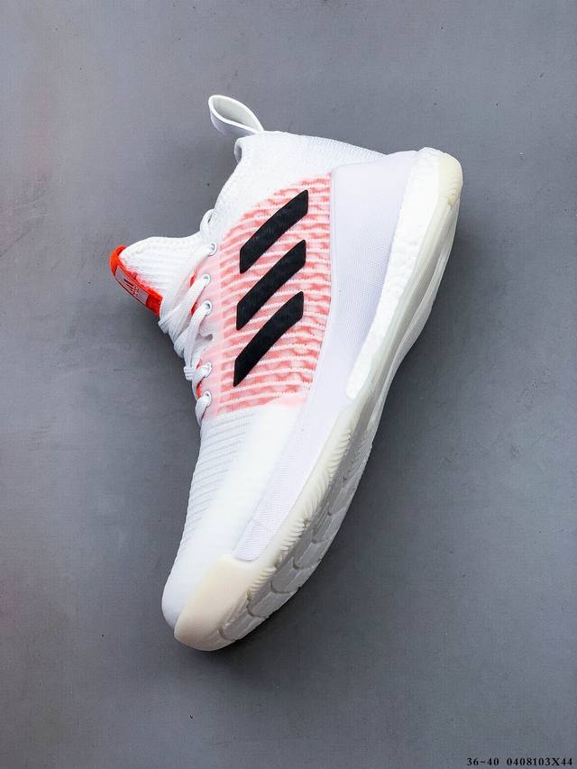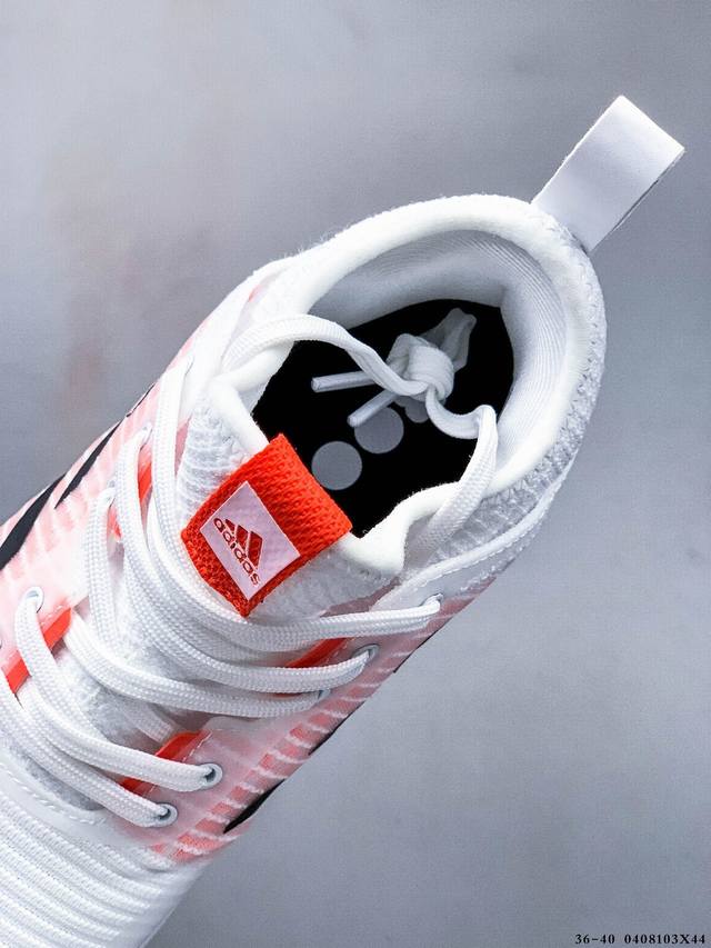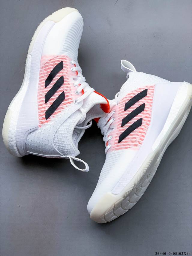 中切设计增加脚踝支撑 采用透气网眼鞋面 弹性袜子般贴合 鞋底3 4处采用 Boost 缓震技术 可实现跳高和软着陆 其周围的合成纤维框架增强了运动到侧面的稳定性