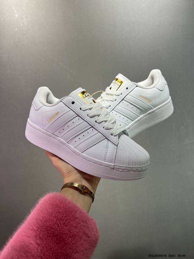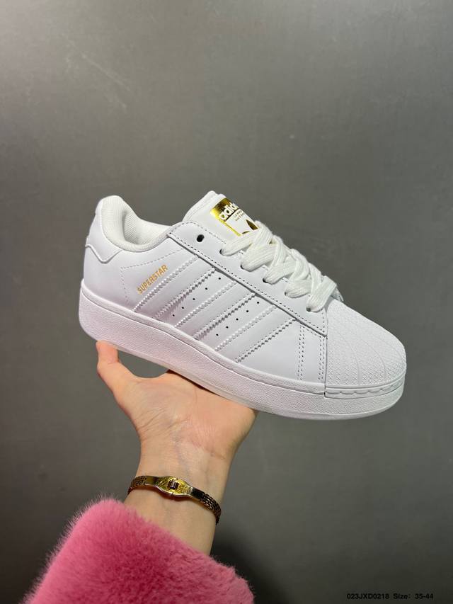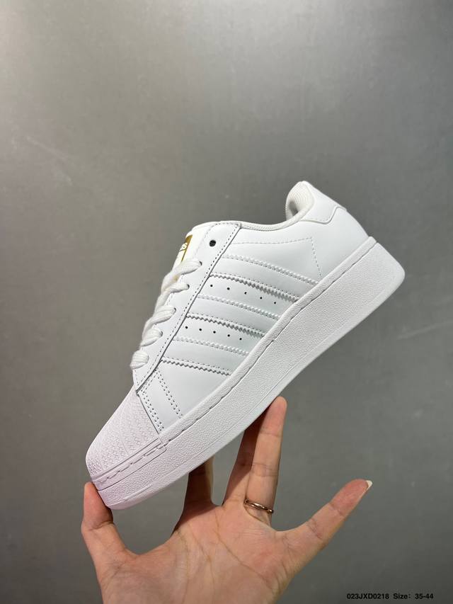 厚底贝壳头 Adidas Originals Superstar W 渠道正品订单 诠释市场最高工艺水平 贝壳头经典小白板鞋 专柜上架同步配色 全鞋进口头层皮料打造。区别市面普通真标版本,进出专柜无压力