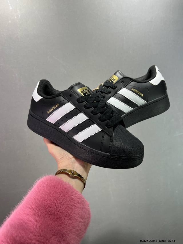 厚底贝壳头 Adidas Originals Superstar W 渠道正品订单 诠释市场最高工艺水平 贝壳头经典小白板鞋 专柜上架同步配色 全鞋进口头层皮料打造。区别市面普通真标版本,进出专柜无压力