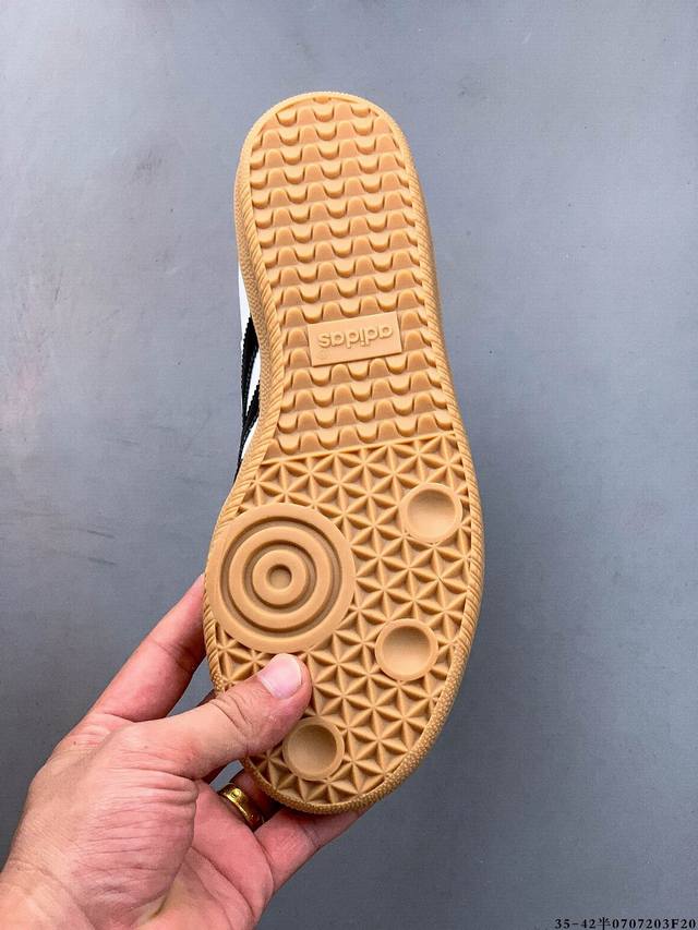 它采用了玛丽珍鞋的特色设计 如鞋面上的扣带和环扣装饰 同时保留了Samba鞋的经典三道杠设计和橡胶大底 这款鞋的鞋型修长 中足偏窄 整体贴合感强 适合标准脚型和宽脚型的人群
