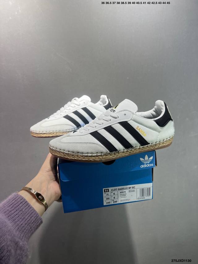 公司级Clot X Adidas Originals Gazelle By Ec 阿迪达斯联名 舒适百搭 防滑耐磨 低帮 板鞋 DDD 货号:Kj0274 DDD 尺码:36 36.5 37 38 38.5 39 40 40.5 41 42 42.5 43 44 45 DDD 编码:275Jxd1130 DDD