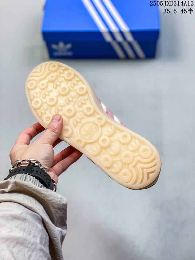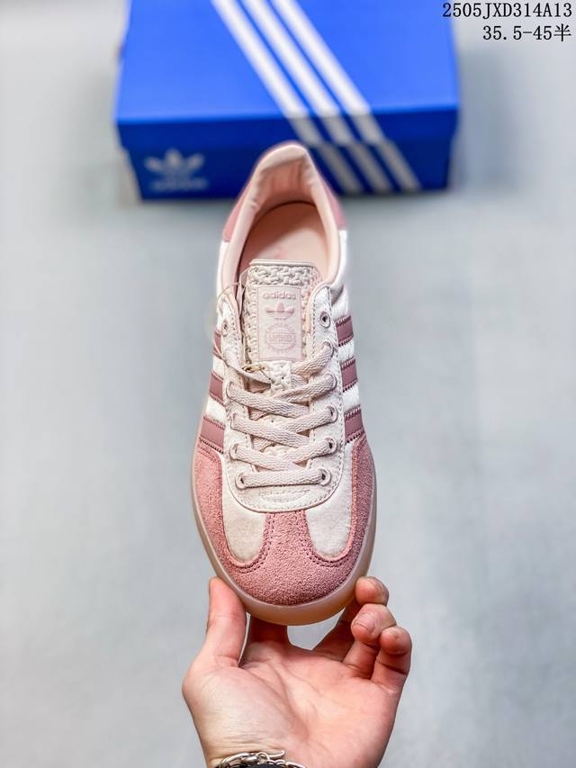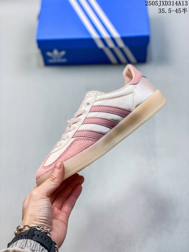升级原楦开发版型,采用翻毛皮鞋面材质,内环保海玻璃鞋垫,外置Rb橡胶大底将复古进行到底,阿迪达斯Adidas Gazelle Indoor Trainers 羚羊内训系列低帮复古德训风百搭休闲运动板鞋“ Ji2709