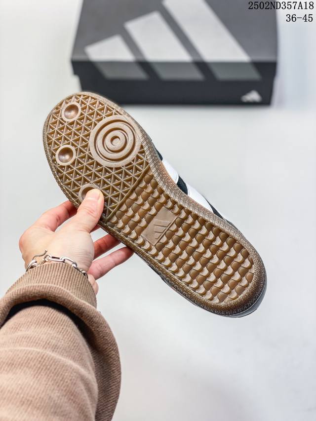 性价比Z版#男女鞋半码制#采用软质荔枝纹纤维革组合翻毛皮鞋面材质#内环保海玻璃鞋垫#外置加厚耐磨橡胶大底延续Og经典设计风格,重塑白黑经典配色!阿迪达斯Adidas Samba Xlg White Black Gum 桑巴舞加大厚底版系列德训风百搭松糕休闲运动板鞋“白黑生胶底”Ie1377