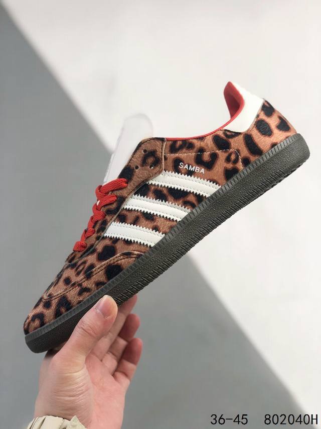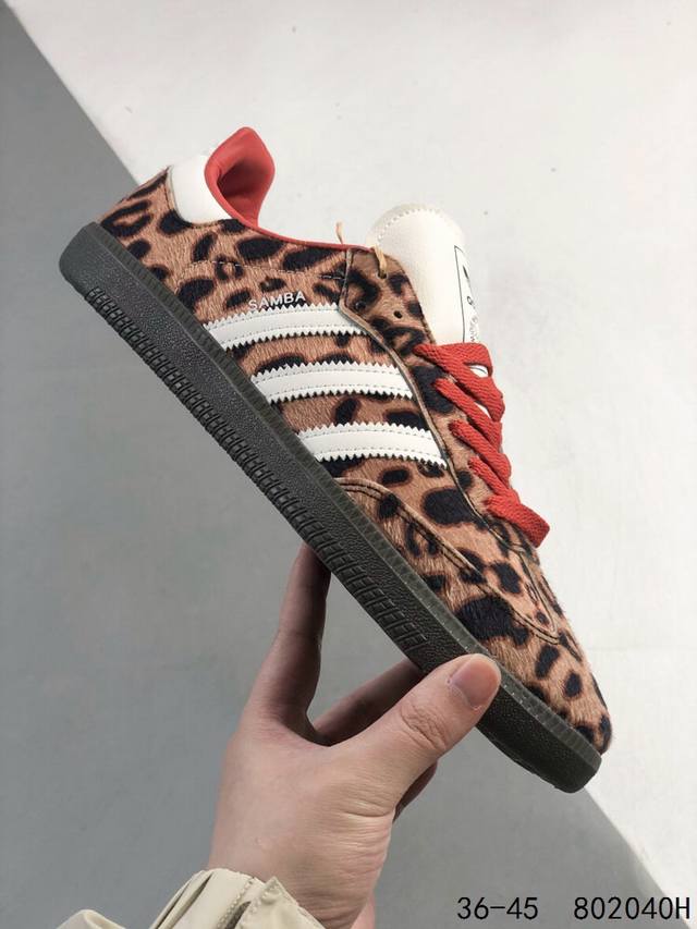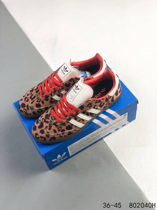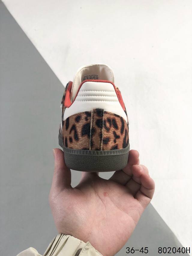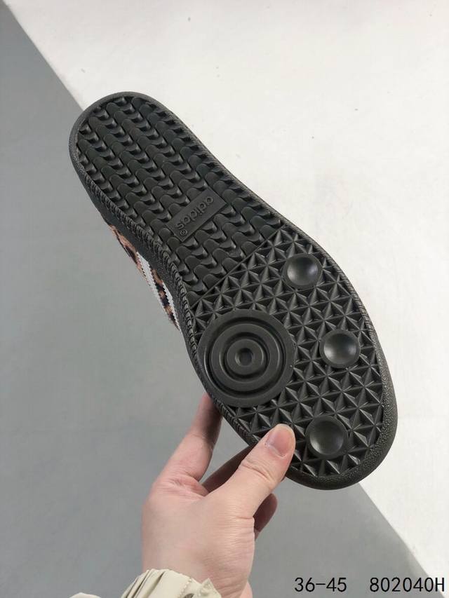 / 真标带半码! 阿迪达斯 三叶草Adidas Samba Vegan Og 豹纹 桑巴舞系列绅士德训足球风百搭低帮休闲运动板鞋 Id:802040H