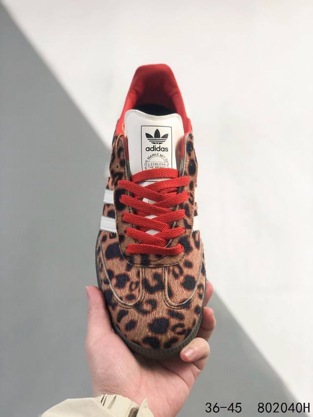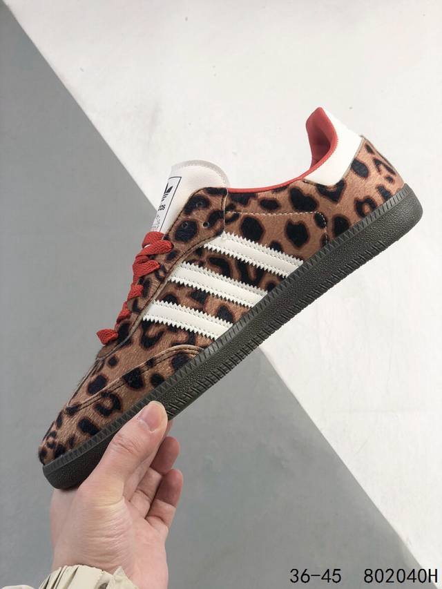 真标带半码! 阿迪达斯 三叶草Adidas Samba Vegan Og 豹纹 桑巴舞系列绅士德训足球风百搭低帮休闲运动板鞋 Id:802040H