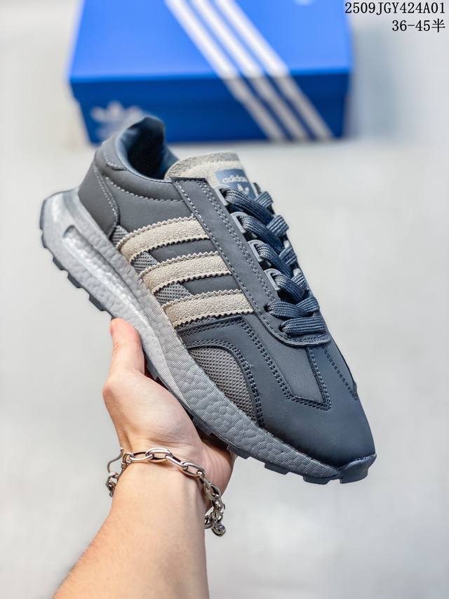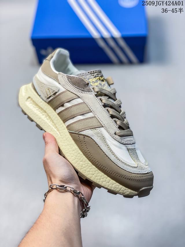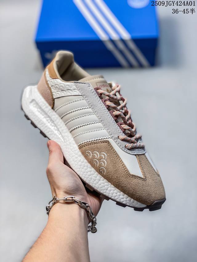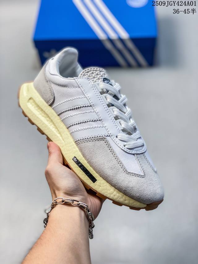 真标带半码 阿迪达斯Adidas Originals Retropy E5 爆米花速度轻盈复古系列百搭透气休闲运动慢跑鞋。全新Boost轻量缓震鞋底材质# 轻盈