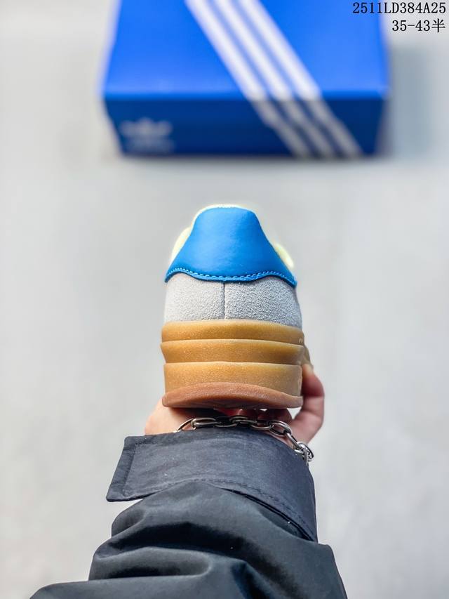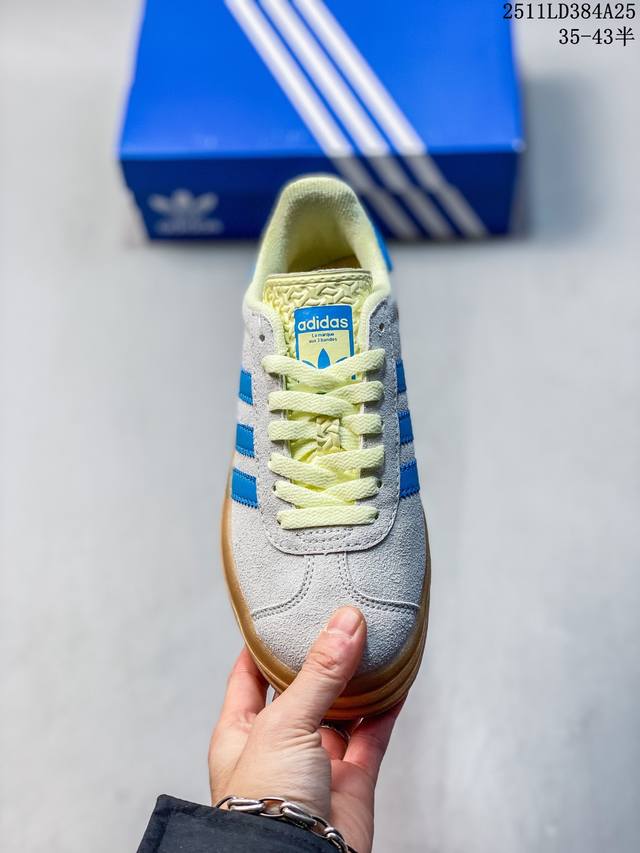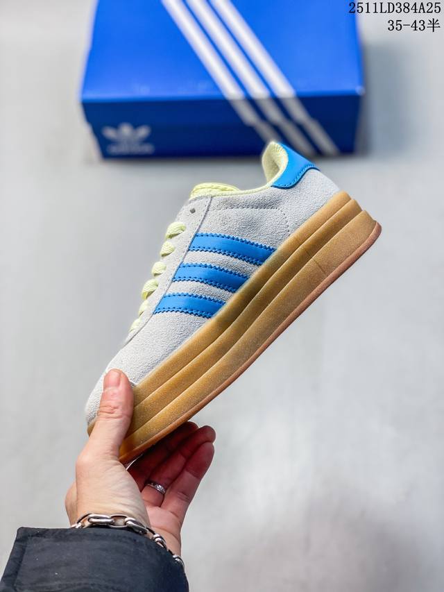 真标 阿迪达斯 Adidas 2025年新款 新年鞋子 三叶草 Gazelle Bold复古怀旧风厚底增高运动板鞋潮。阿迪达斯万年不败的人气鞋款Gazelle ,以三层厚磅鞋底设计。一层层的堆叠设计不仅充满巧思,更使层次感更加分明,厚底一踩上至少加三公分腿长不夸张。鞋面全反毛皮皮革,充满低调奢华的复古潮流感,且配色最是经典好搭配,入手穿个五年也不会退流行,天天变换风格搭配更是绝不Ng。 DDD 货号:Jq0955 DDD 尺码:35-43含半码 DDD 11Ld384A25 DDD