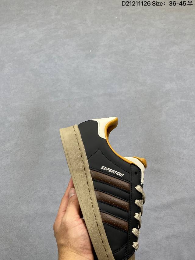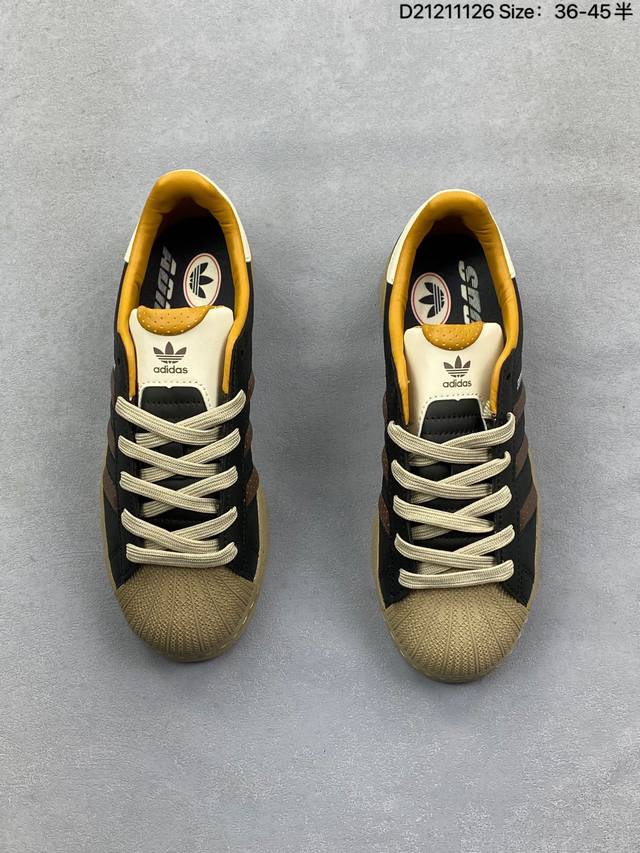 120头层皮 adidas Originals Superstar Xlg T贝壳头系列低帮厚底松糕经典百搭休闲运动板鞋 以现代时尚元素焕新演绎的经典运动鞋当你