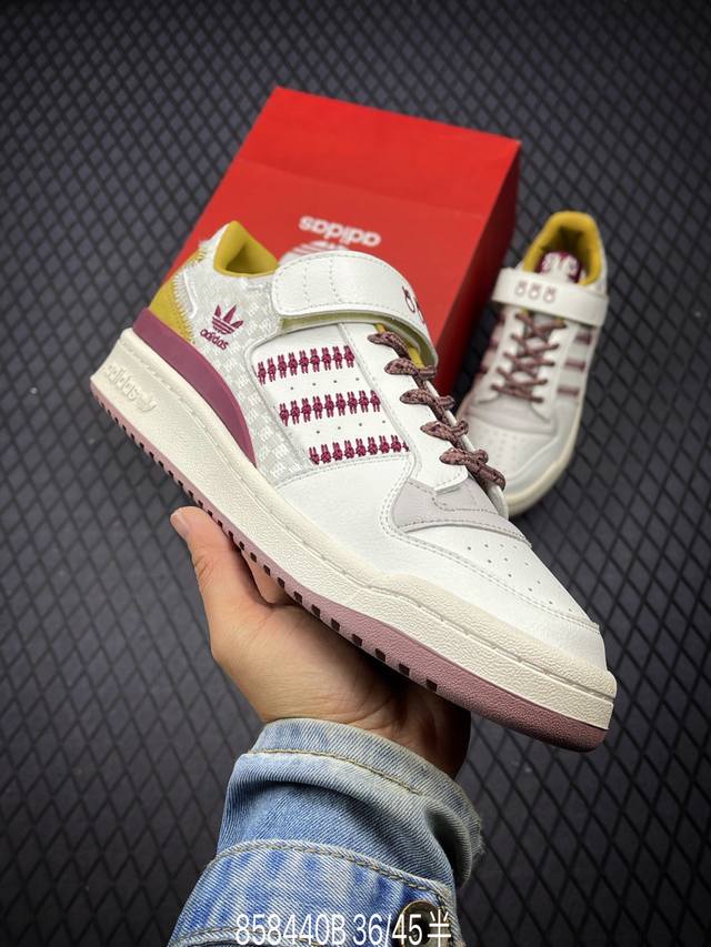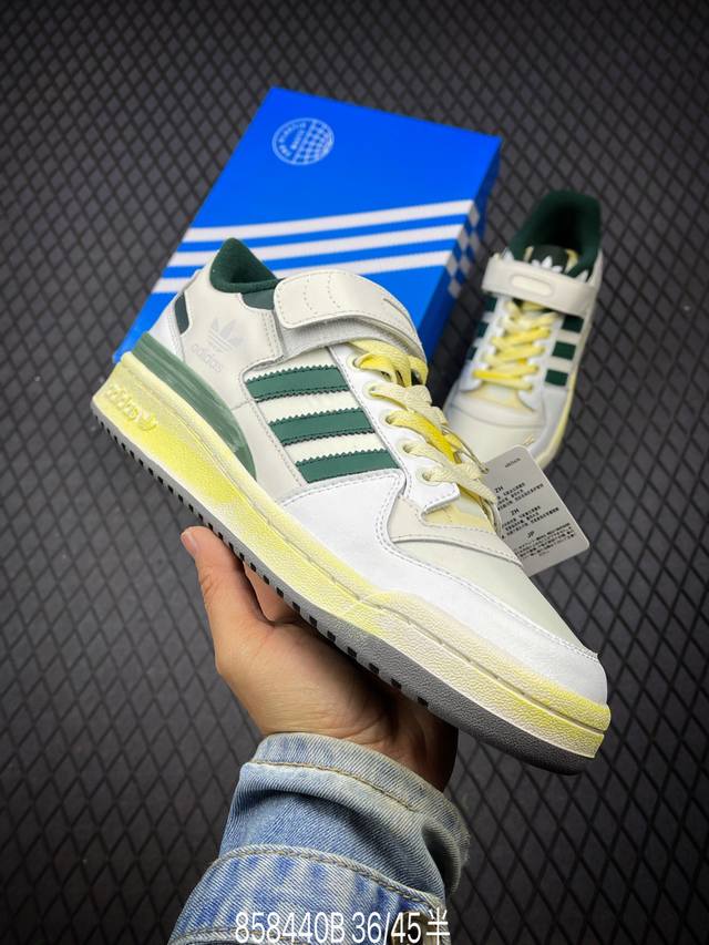 阿迪达斯 Adidas Forum 84 Low 低帮百搭潮流休闲运动板鞋。以复古篮球鞋的外形为基础,采用皮革拼接,简约百搭,更加贴合舒适。中底内侧网格造型起到点睛之笔,外底橡胶,更显复古!