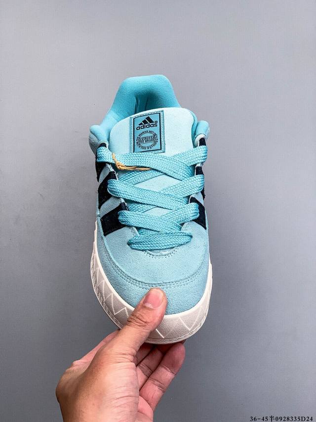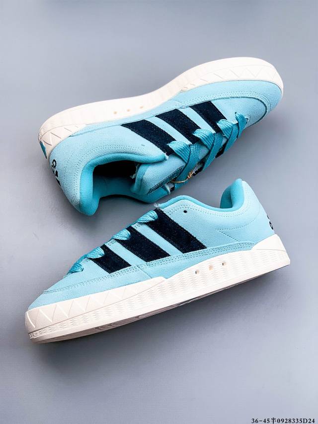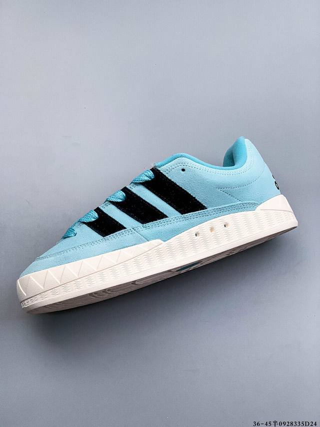 采用固色翻毛皮革鞋面材质#耐磨橡胶大底超火的阿迪达斯 鲨鱼面包鞋 新联名开启,日本知名球鞋店铺Atmos X Adidas Adimatic Low马蒂奇系列低帮复古鲨鱼面包休闲运动休闲滑板板鞋