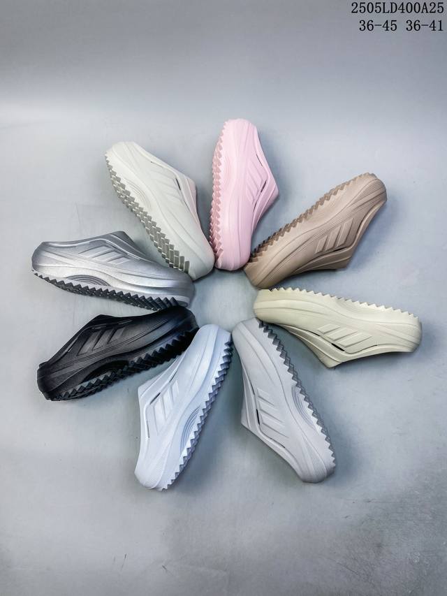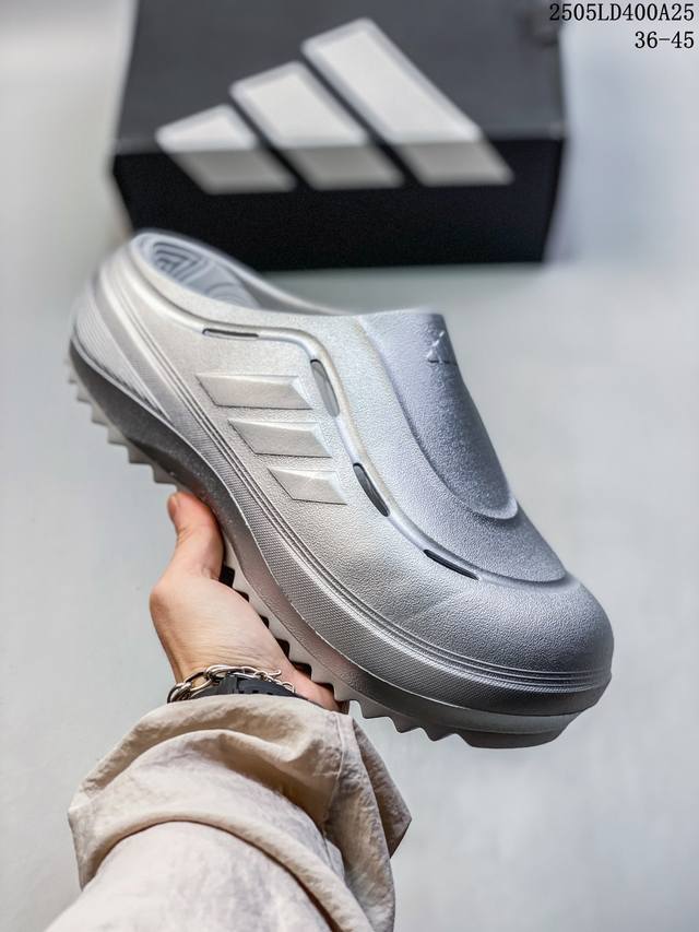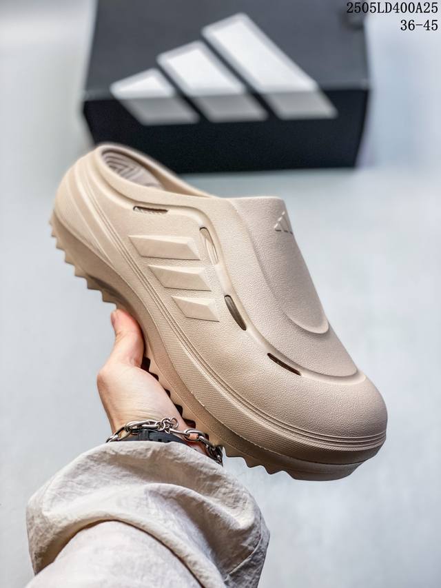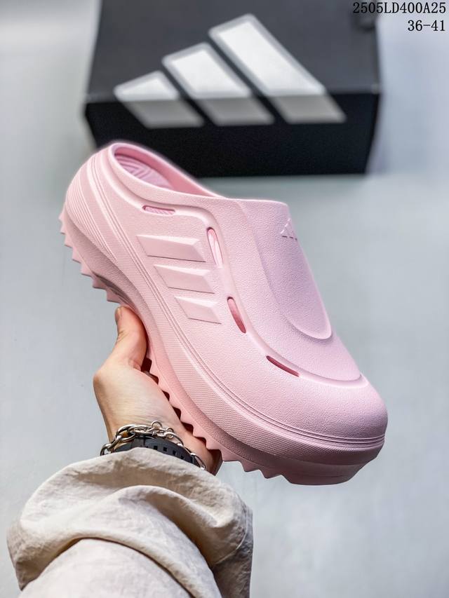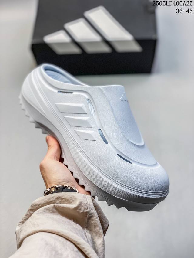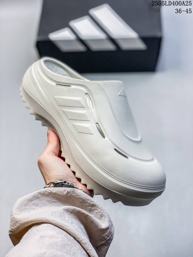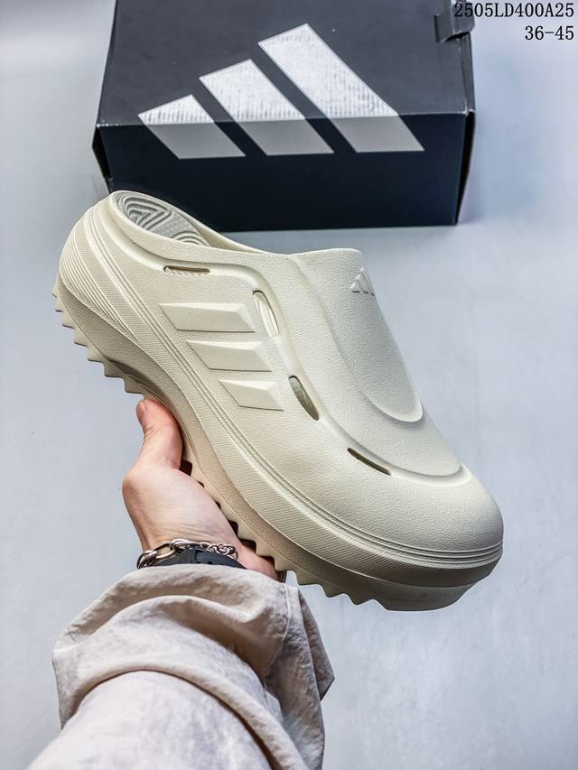 阿迪达斯 Adidas 波波凉鞋 Ozwave Clog 波波凉鞋 沙滩拖鞋 稳定缓震回弹厚底老爹拖鞋 阿迪达斯 珠光 设计灵感来源于经典复古鞋型 Adidas Originals Oznova 两侧三道杠 鞋面流畅的线条 勾勒出富有未来感的廓形 鞋面排布有透气孔 既保留了复古韵味 又不失夏日清凉 采用一脚蹬无鞋带的设计 像是户外涉水 城市通勤都能拿捏 并且也比较好打理 宽大的鞋底配合锯齿元素 极具造型感 满足防滑的同时 上脚也足够有辨识度 整双鞋是饱满的廓形轮廓 搭配厚底造型 除了对裤装有一定的承托作用