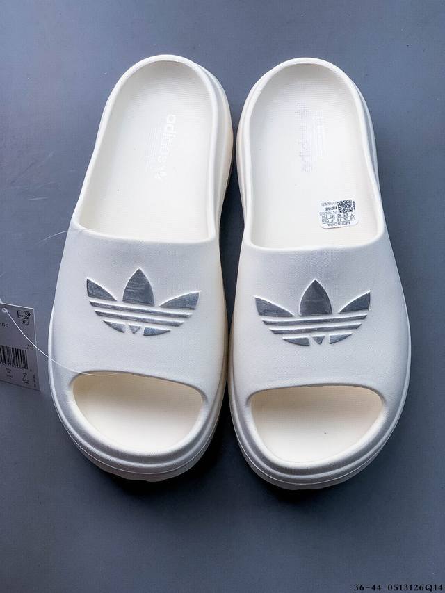 阿迪达斯 Adidas Adifom 夏季沙滩涉水百搭休闲拖鞋 露趾凉拖鞋 超厚底增高男女鞋凉拖鞋。采用超轻95% 注塑 Eva塑料,5%泡沫塑料发泡缓震物料成型鞋底。