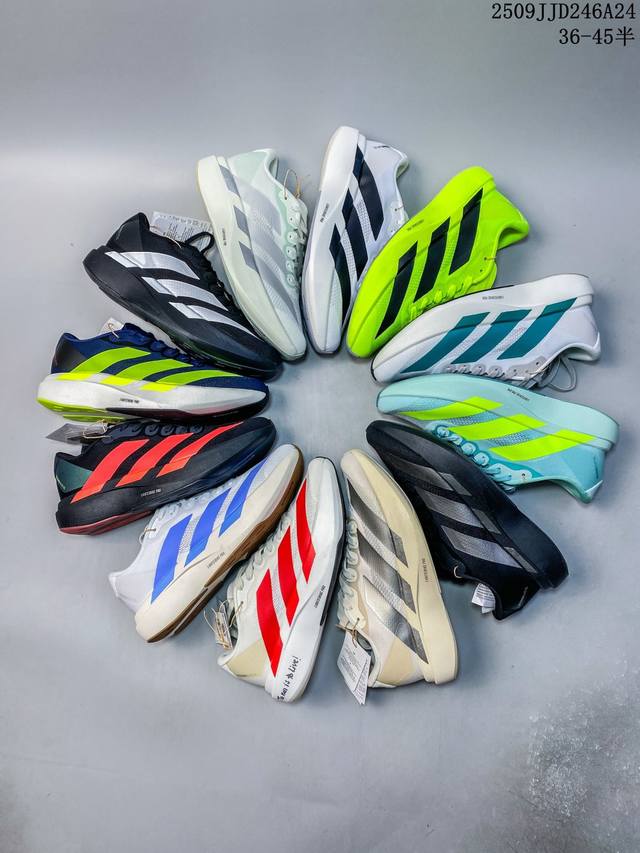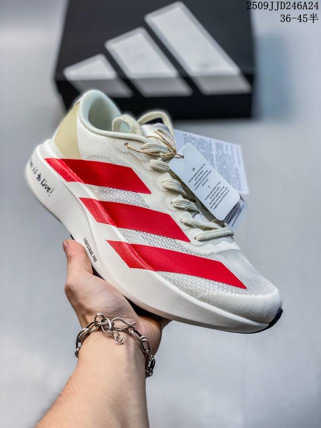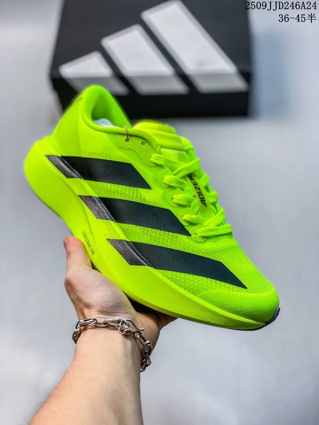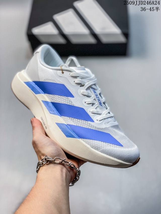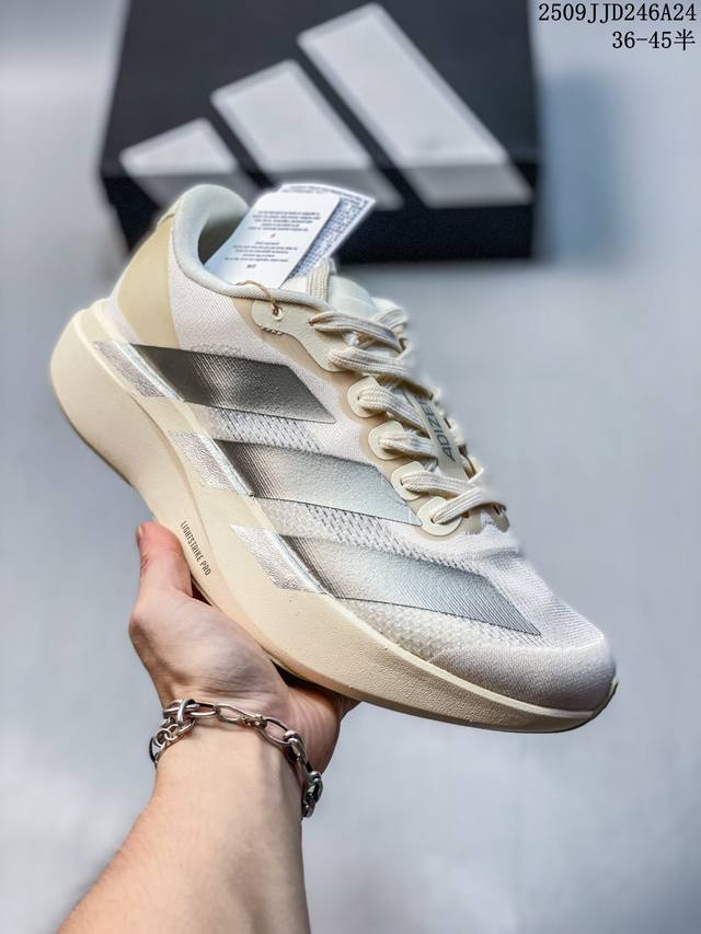 阿迪达斯 Adidas Adizero Adios pro 4 舒适防滑耐磨 低帮 休闲跑步鞋 男女同款厚度增高老爹鞋 金属银 2025年,Adidas推出了Adidas Adispr4跑鞋,该鞋具有软弹的中底和外底,提供稳定的跑动体验。鞋面采用轻盈的材料,具有良好的透气性,同时具有优秀的抓地力和耐磨性。鞋底的软弹性使得蹬击感更加强,而中底的弹性使得跑步更加舒适。整双鞋的稳定性较高,适合各种跑步风格。然而,由于鞋底的软弹性,对于步幅较大的跑者来说,可能会感到不稳定。总体而言,Adidas pr4是一款值得