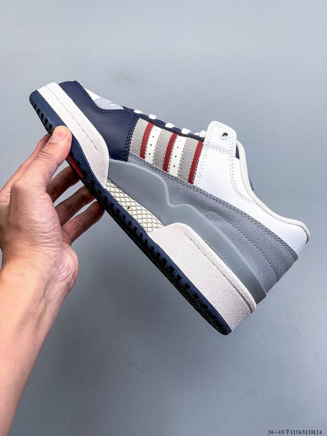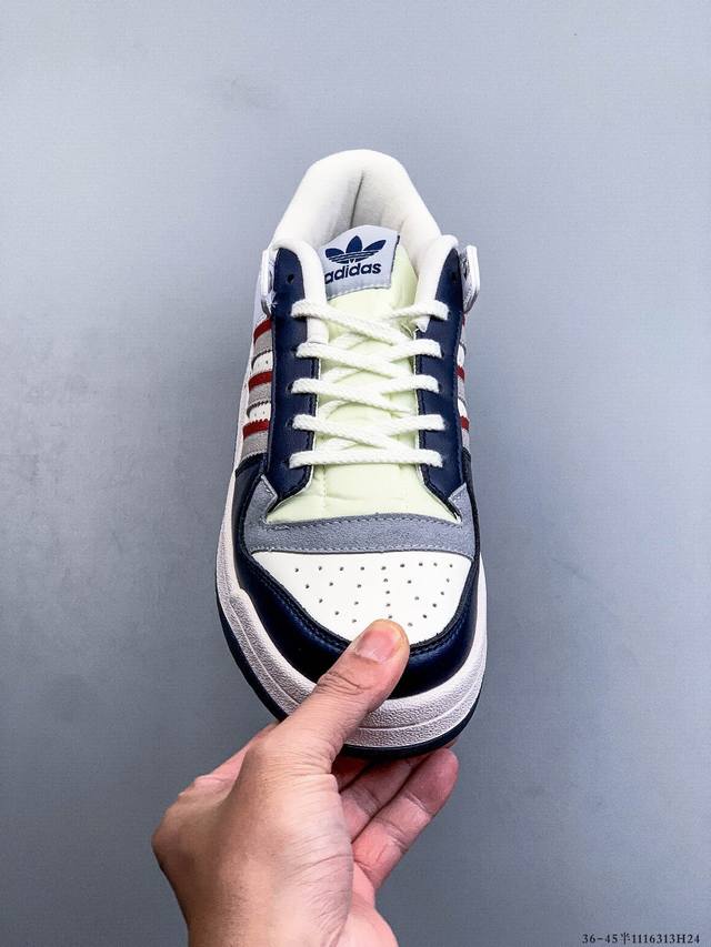 阿迪达斯 Adidas Originals Forum 84 Low Adv 低帮百搭潮流休闲运动板鞋。以复古篮球鞋的外形为基础,采用皮革拼接,简约百搭,更加贴合舒适。中底内侧网格造型起到点睛之笔,外底橡胶,更显复古! DDD 1116313H24 DDD