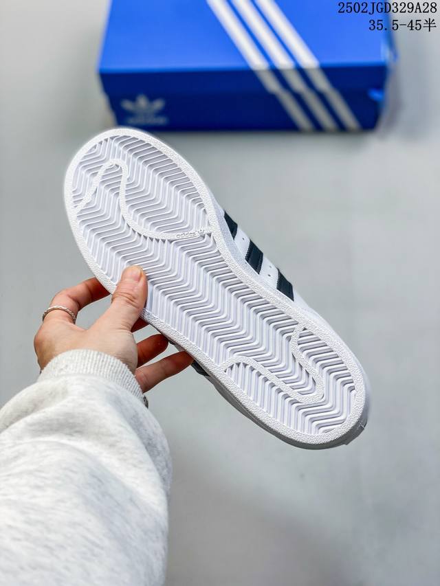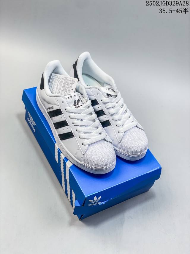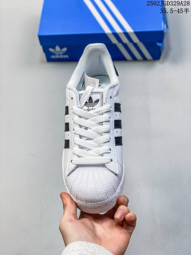 阿迪达斯 Adidas Superstar 三叶草经典贝壳头系列 新款休闲板鞋潮流男女士运动鞋 。鞋面柔软皮革材质 标志性的贝壳鞋头,锯齿三条纹,简约的线条。就连版型和比例,都在向1982年的鞋款致敬。可谓“形神兼备”的复刻。无论在哪,无论去哪,你或许都需要这样一双既舒适又时尚的鞋。1970年问世于篮球场的Adidas Superstar,集舒适与时尚于一身。这款经典鞋,缀低调图案,灵感源自公共交通地图。设计简约,旨在伴你出行。心动不如行动,系好鞋带,出发吧。