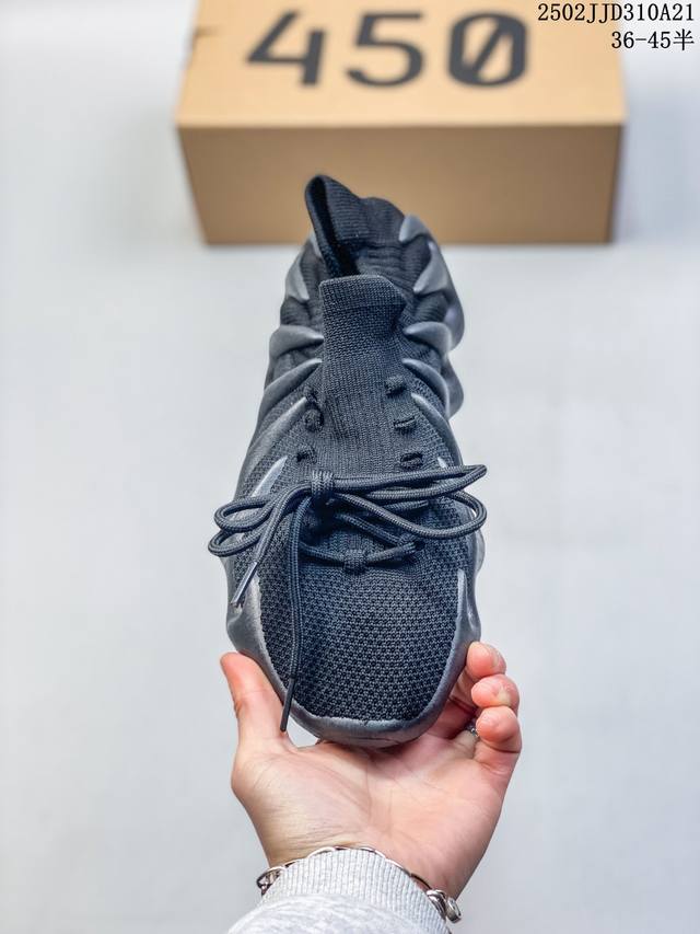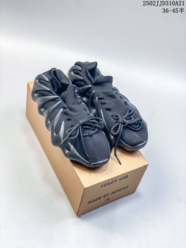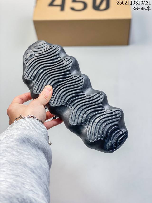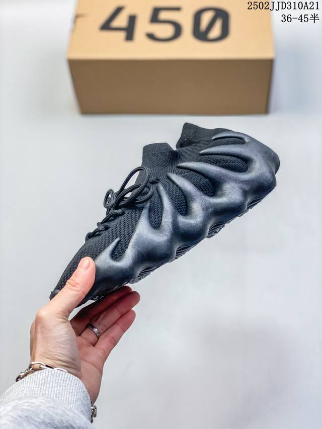 阿迪达斯 Adidas Yeezy 450 侃爷椰子 贾斯丁比伯同款 编织袜套鞋 该系列搭配夸张的锯齿中底设计 独特的上翻结构十分符合各路球鞋玩家给他的爱称 中底部分似乎并没有采用Boost等缓震科技 但脚感任然非常舒适 可谓是目前最为独特的Yeezy鞋款。