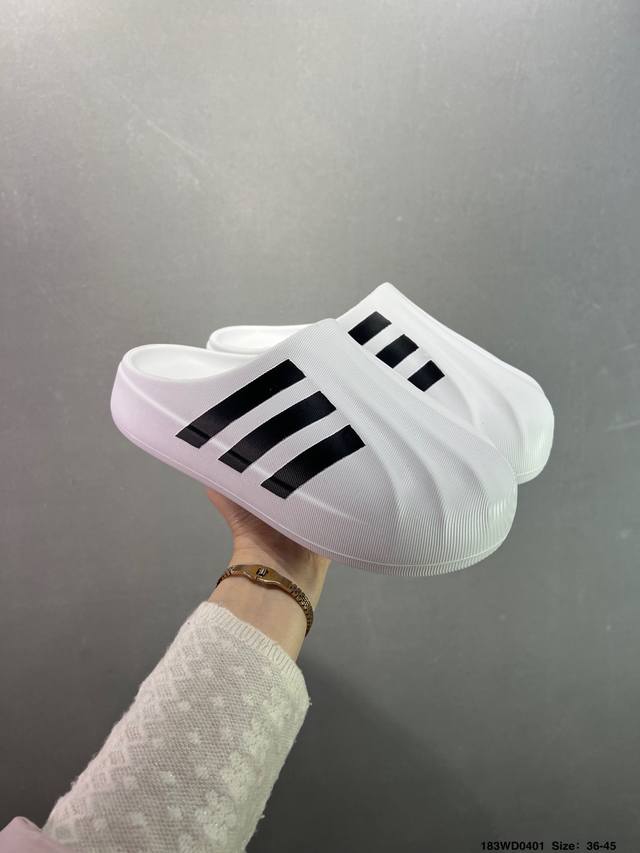 阿迪达斯Adidas Adilette Clogs Mule 莱特穆勒系列休闲运动室内外涉水包头露跟凉鞋式洞洞拖鞋 货号:If6184 尺码:36-45 Id: