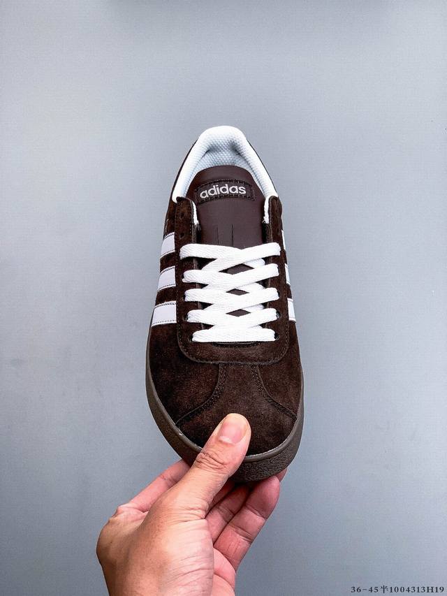 阿迪达斯Adidas Neo Vl Court 2.0 三叶草时尚潮流板鞋 T头 绒面麂皮防滑耐磨轻便低帮板鞋 整双鞋以传统的低帮呈现的清新造型 鞋头优先头层反