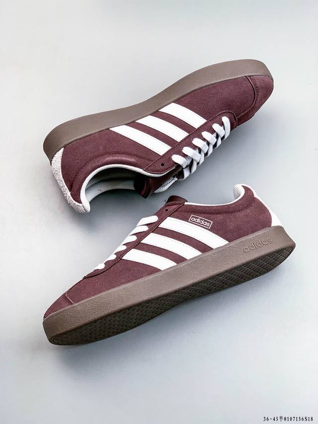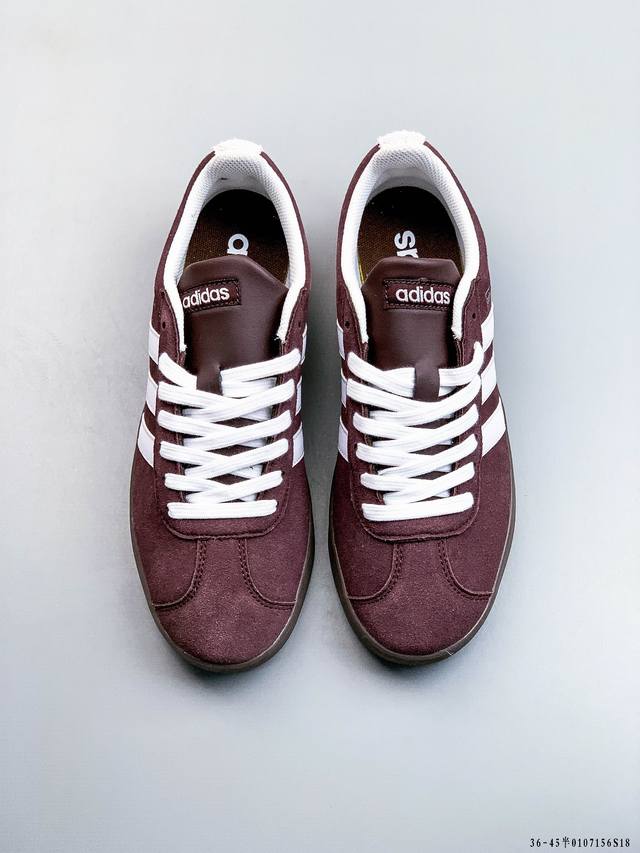 阿迪达斯Adidas Neo Vl Court 2.0 三叶草时尚潮流板鞋 T头 DDD 绒面麂皮防滑耐磨轻便低帮板鞋 DDD 整双鞋以传统的低帮呈现的清新造型