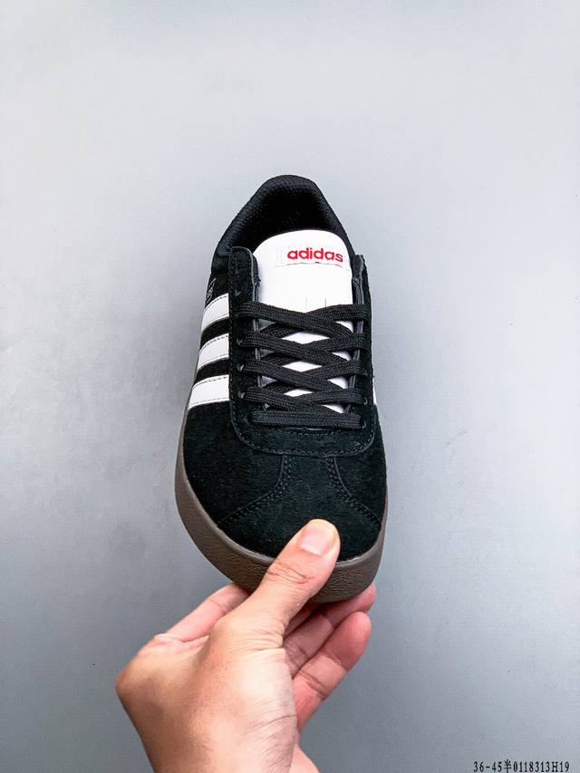 FFF 阿迪达斯Adidas Neo Vl Court 2.0 三叶草时尚潮流板鞋 T头 DDD 绒面麂皮防滑耐磨轻便低帮板鞋 DDD 整双鞋以传统的低帮呈现的清新造型 鞋头优先头层反毛皮 DDD 包裹保证优秀质感的同时 DDD 中底选择了与德训鞋类似的生胶材质打造 DDD 并且厚度十分可观 DDD 相信可以将脚感与增高效果双双拿捏 DDD 0118313H19 DDD