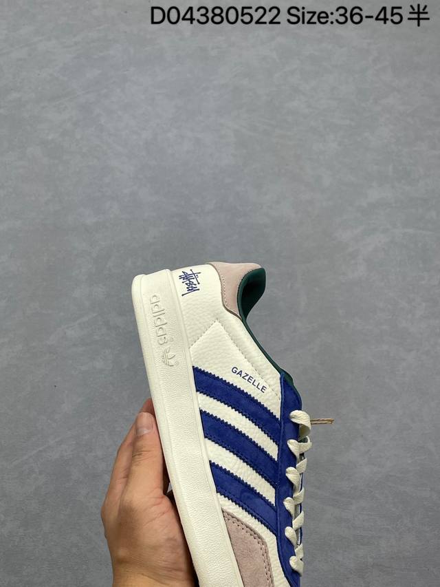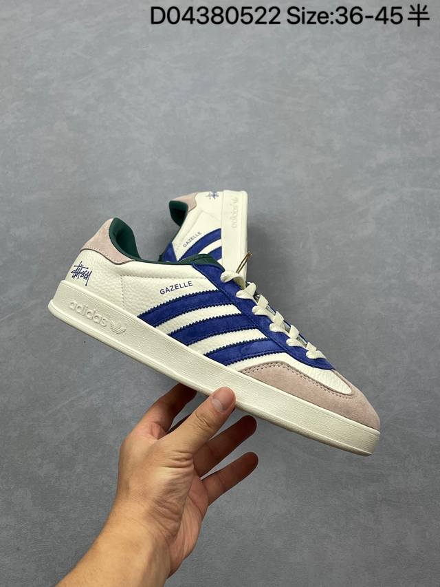 阿迪达斯Adidas Originals Gazelle Indoor 三叶草复古防滑耐磨低帮板鞋 Hq8717 鞋款采用柔软的绒面革和耐用的皮革衬里融合在橡胶外底上