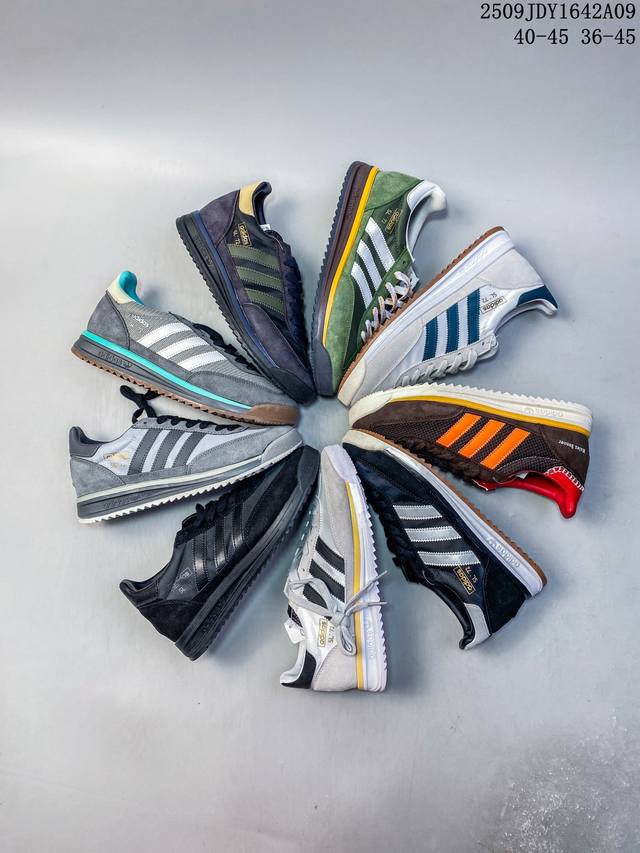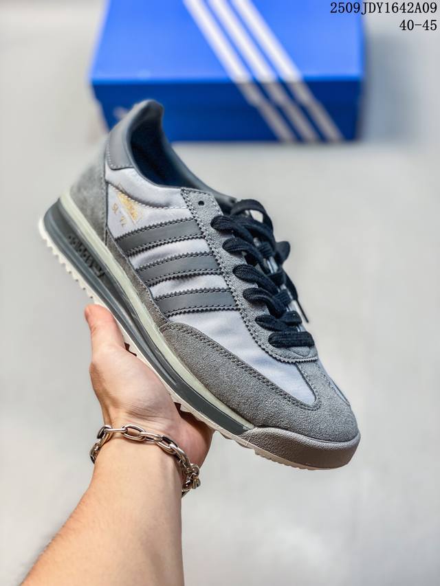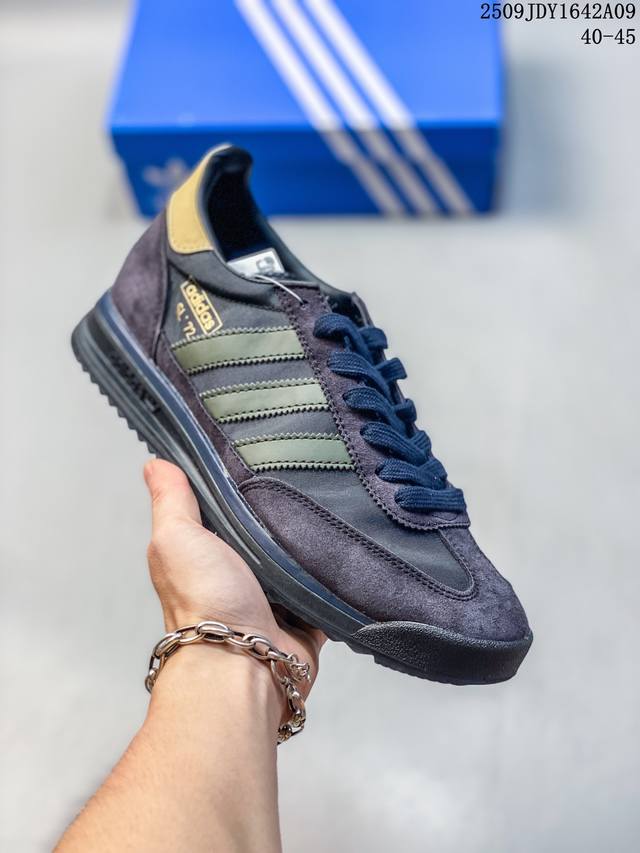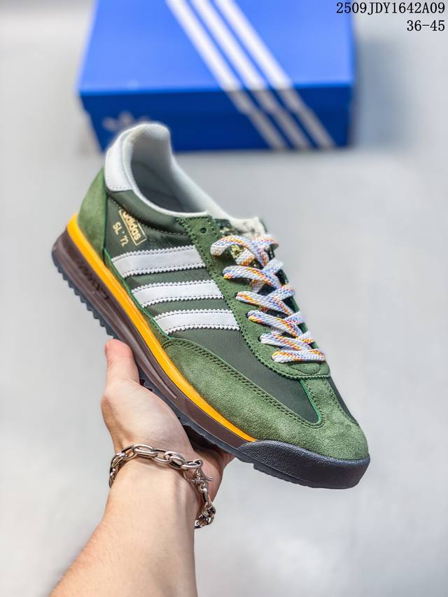阿迪达斯Adidas Sl 72 Shoes 经典复古薄底运动鞋 T头鞋 三叶草复古休闲跑步鞋休闲运动鞋 这款经典运动鞋携复古型格,来访你的活力日常 采用舒爽帆布鞋面、绒面革饰面和皮革细节等设计。含Ecotex鞋舌,更添质感;搭配Eva中底,助你舒适出行。采用经典低帮设计和橡胶外底,旨在打造时尚型格。 常规版型 系带设计 锦纶、绒面革和皮革鞋面 Ecotex纹理感鞋舌 乙烯 乙酸乙烯酯 Eva 中底 织物衬里 橡胶外底。