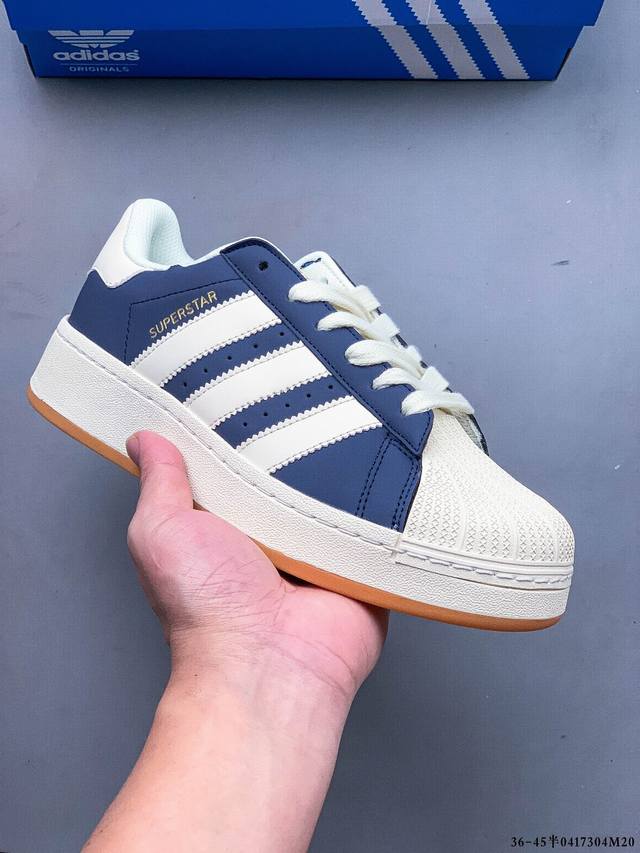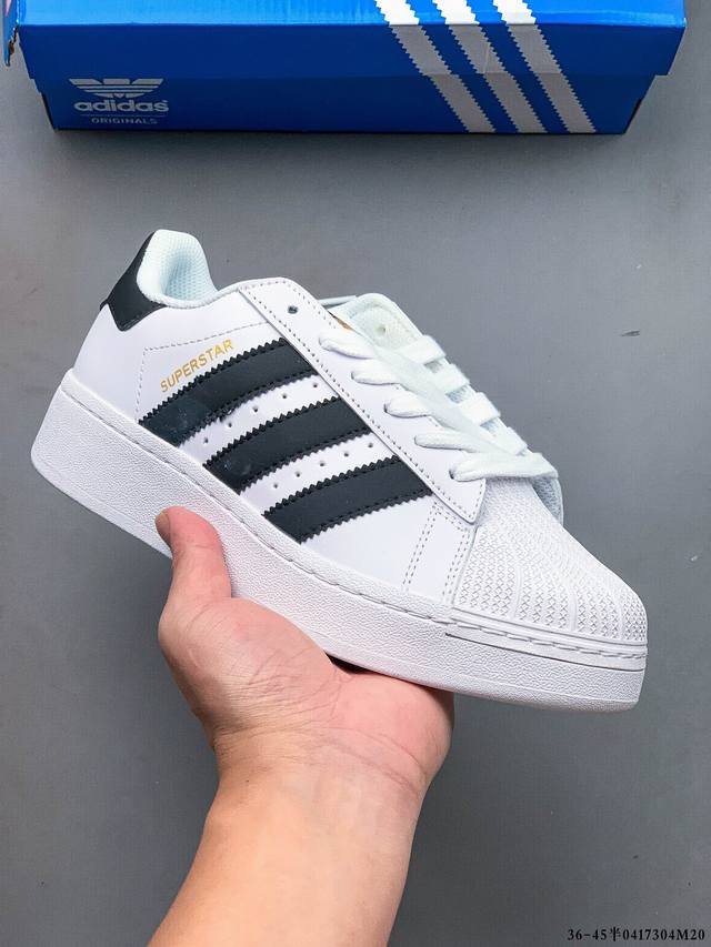 / 集图 公司级!阿迪达斯Adidas Superstar Xlg 贝壳头厚底增高百搭休闲运动板鞋 原楦原纸版数据开发 采用头层皮革材质打造 正确鞋垫 正确底模及扇