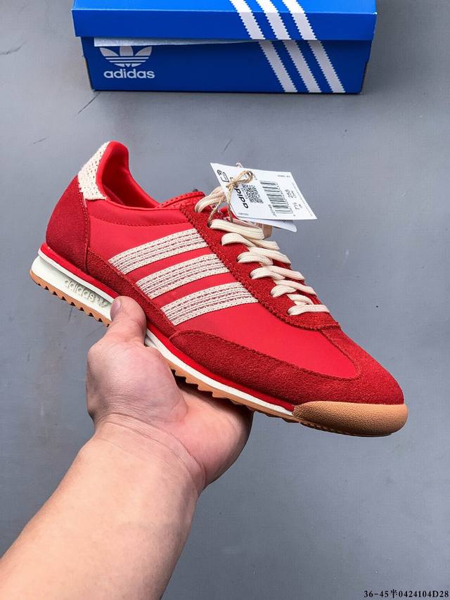 阿迪达斯Adidas Sl 72 Rs 全新重置版本,将这款复古鞋型用尼龙材质呈现,最终拼接麂皮材质,让该鞋型上脚既有舒适透气性又有满满的复古质感