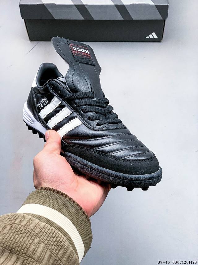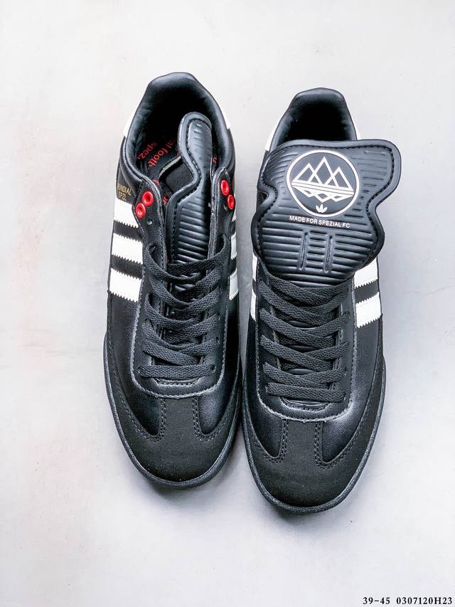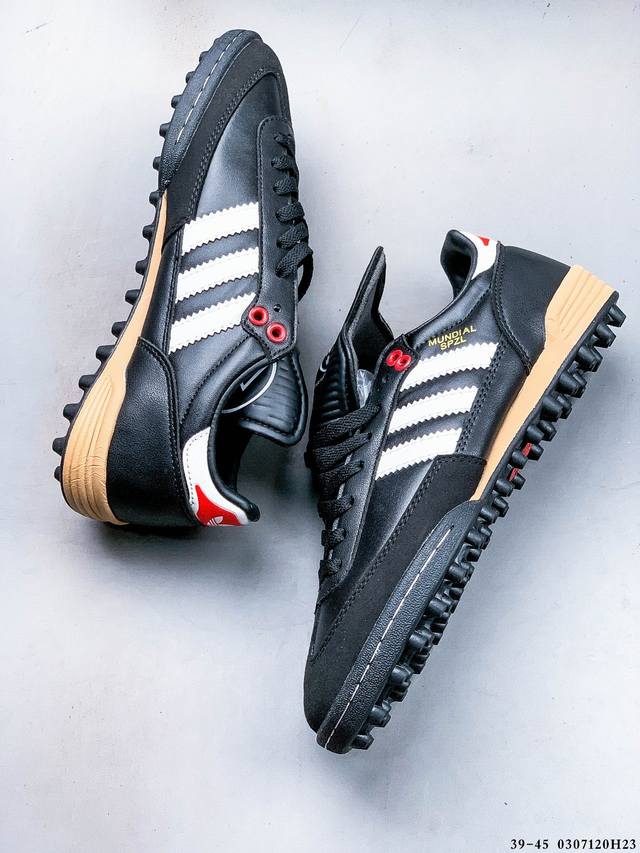 Adidas Spezial Mundial Team足球鞋!这款 Mundial Team 足球战靴,以其独特的橡胶大底设计,赋予了无与伦比的抓地力,其匠心独运的加长鞋舌搭配束带系统,确保了贴合舒适。鞋身上点缀的 Spezial 经典徽标,不仅是对往昔传奇手球鞋款的致敬,更是对卓越品质与不凡追求的象征。